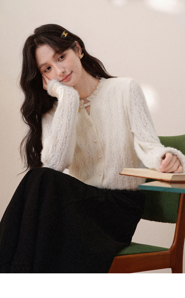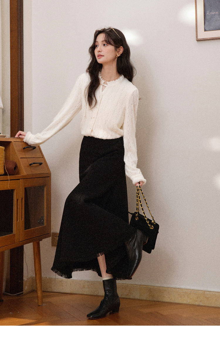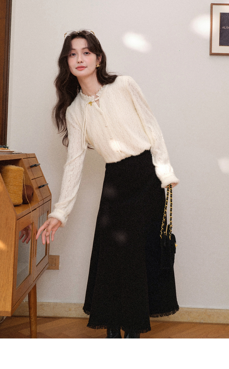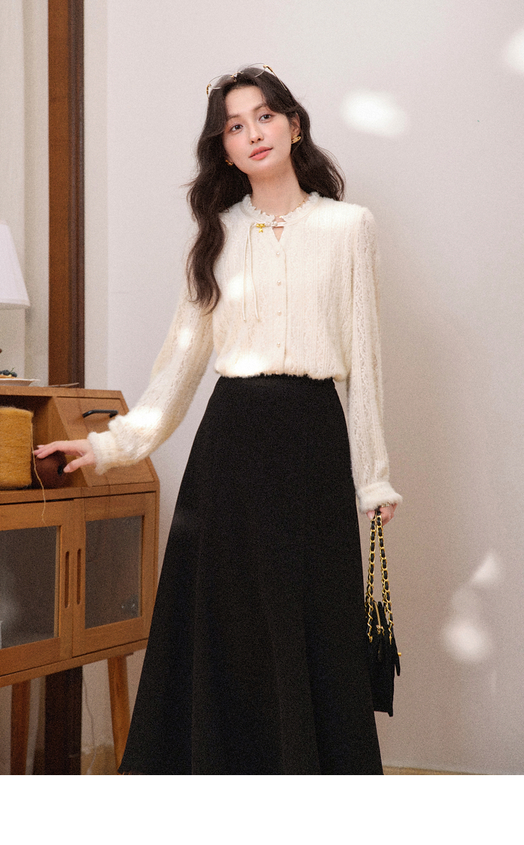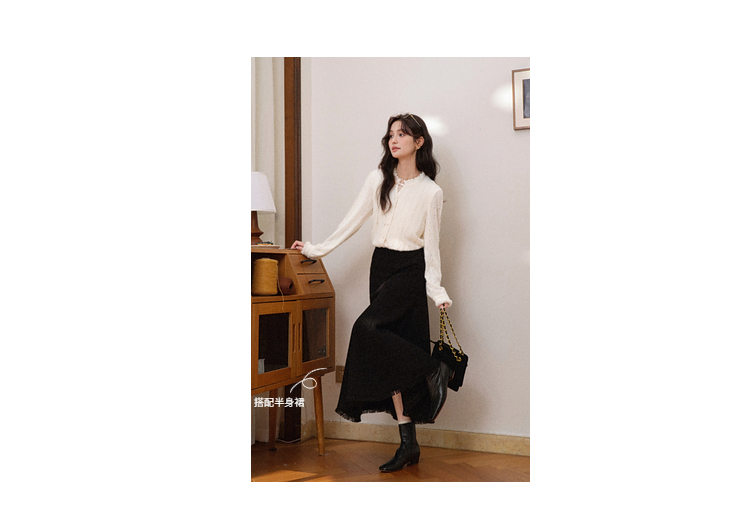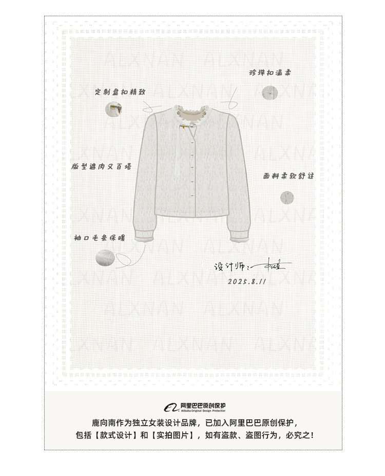 鹿向南「玉兰初雪」杏色长袖衬衫秋冬新款时尚法式修身开衫上衣女