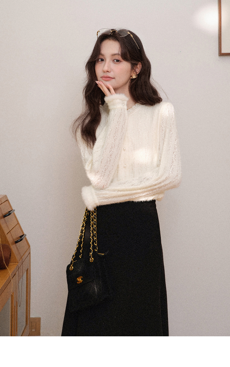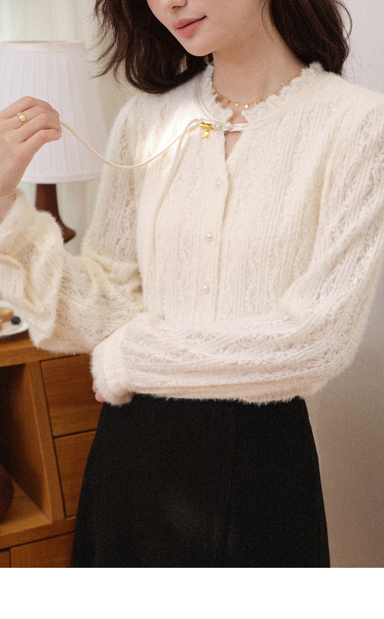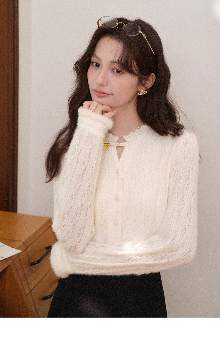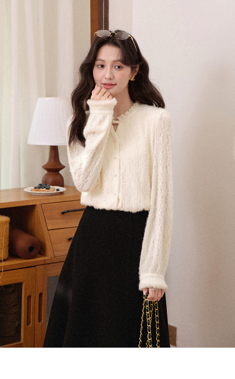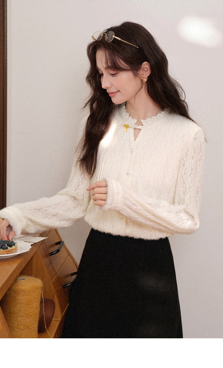 鹿向南「玉兰初雪」杏色长袖衬衫秋冬新款时尚法式修身开衫上衣女