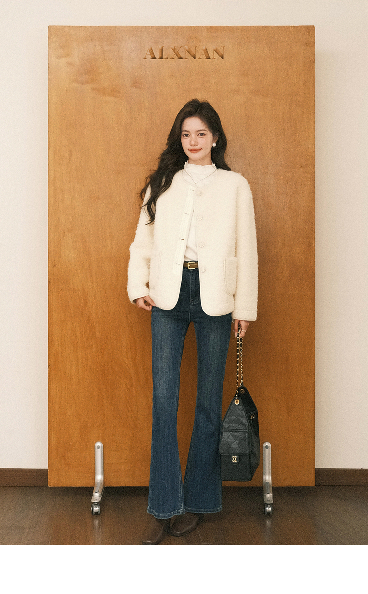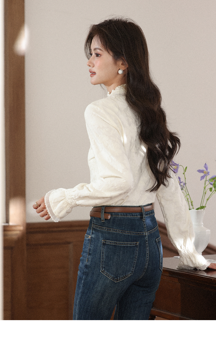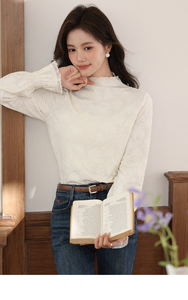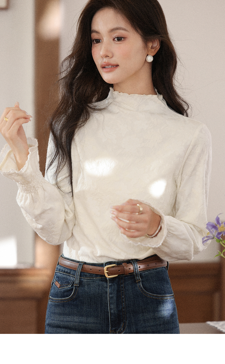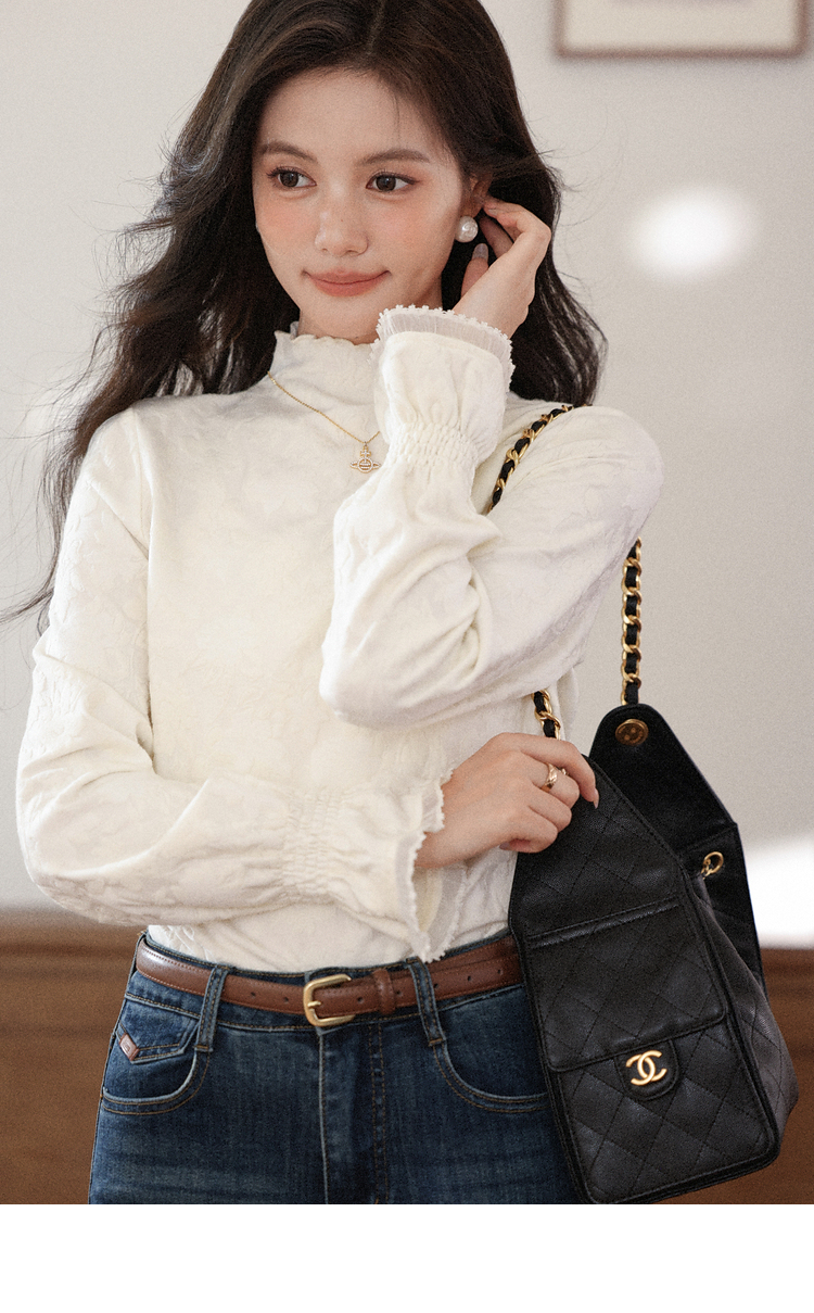 鹿向南「月光流萤」杏色半高领针织衫打底衫女秋修身显瘦内搭T恤