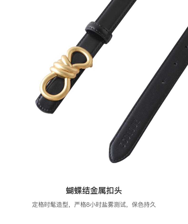 三彩2025新款二层牛皮腰带配饰蝴蝶结金属扣长款皮带休闲时髦百搭