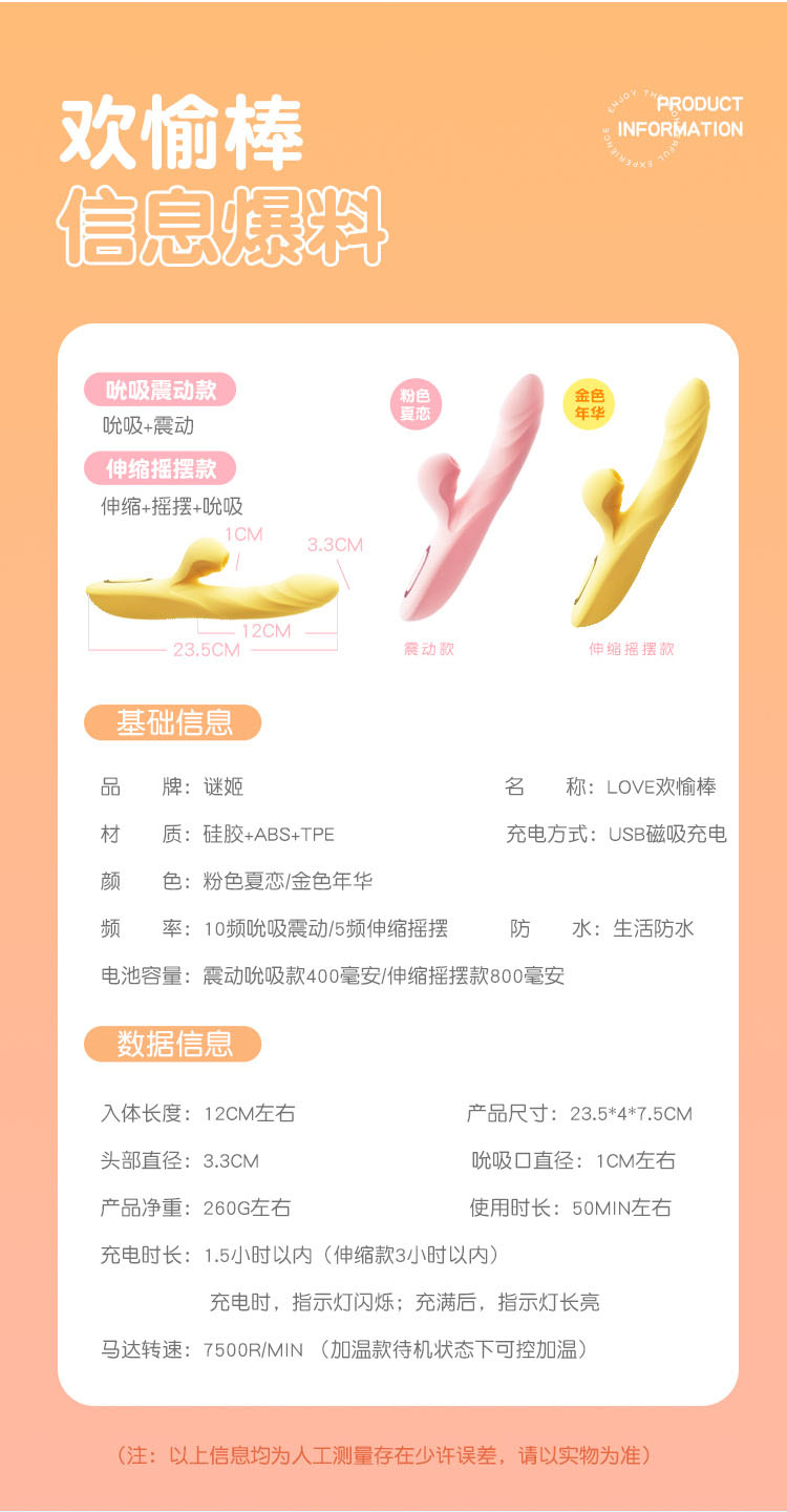 【中高端差异品】谜姬 love欢愉棒-震动伸缩摇摆吮吸加温仿真头部柔软震动棒