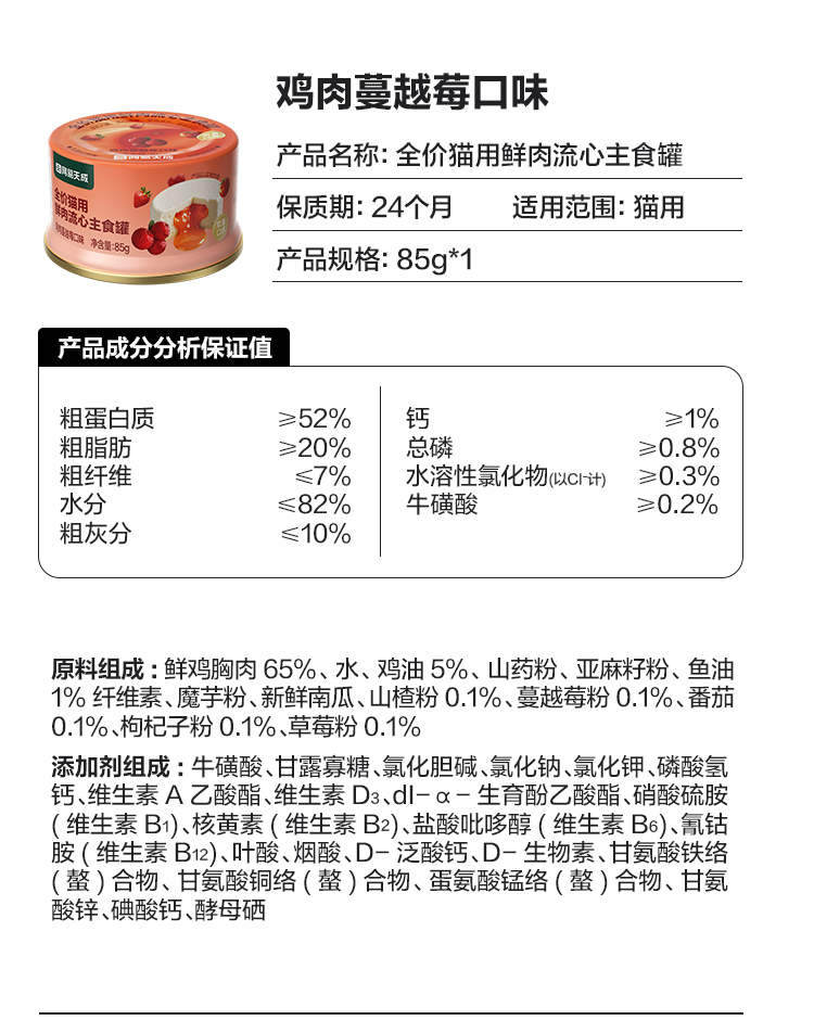 全价猫用鲜肉流心主食罐,主食级营养