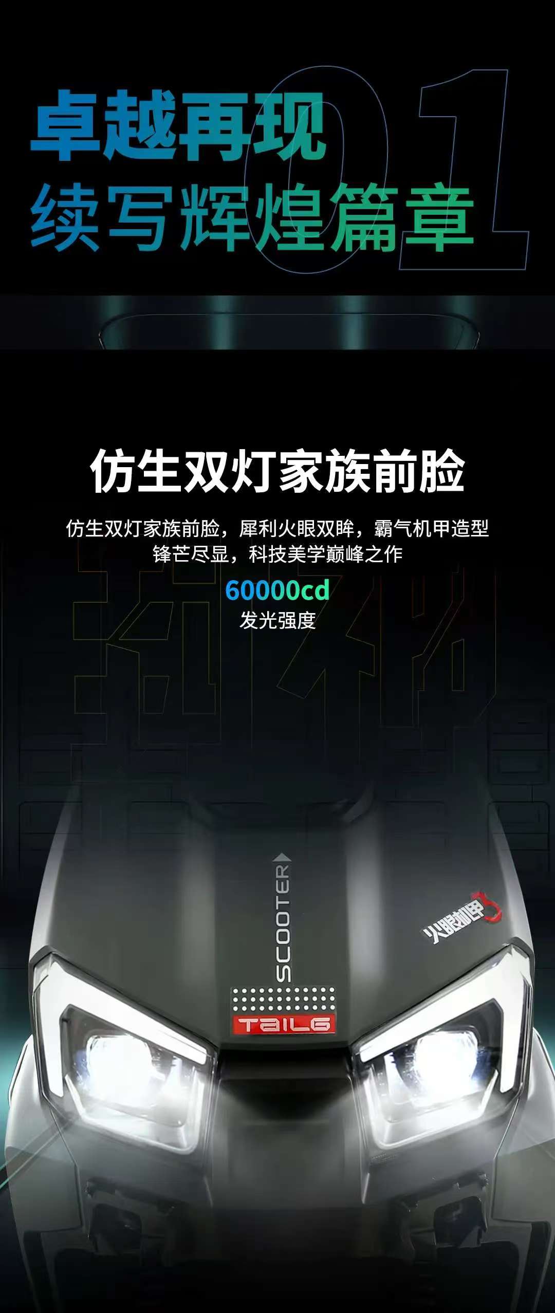 照明系统:65000cd火眼激光大灯、硬派纵置战术尾灯