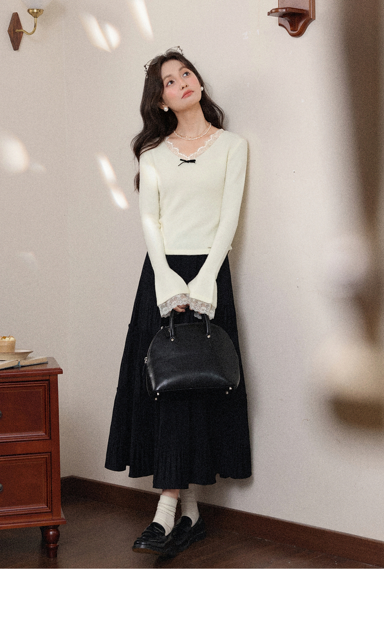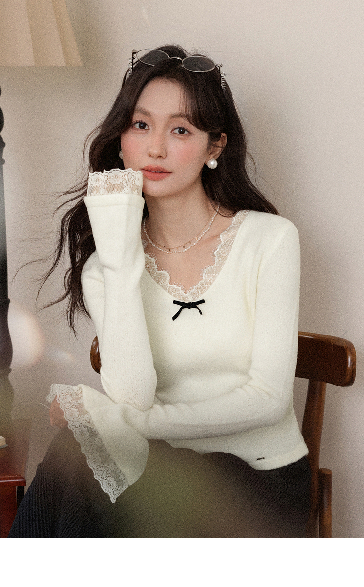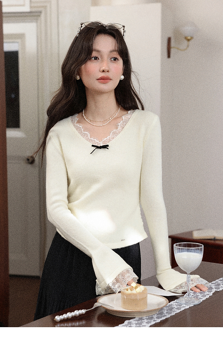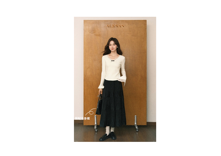 鹿向南「云杉柔雾」温柔风杏色长袖针织衫女秋冬新款修身显瘦内搭
