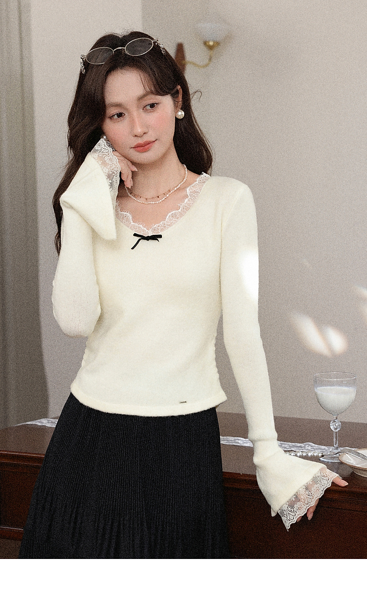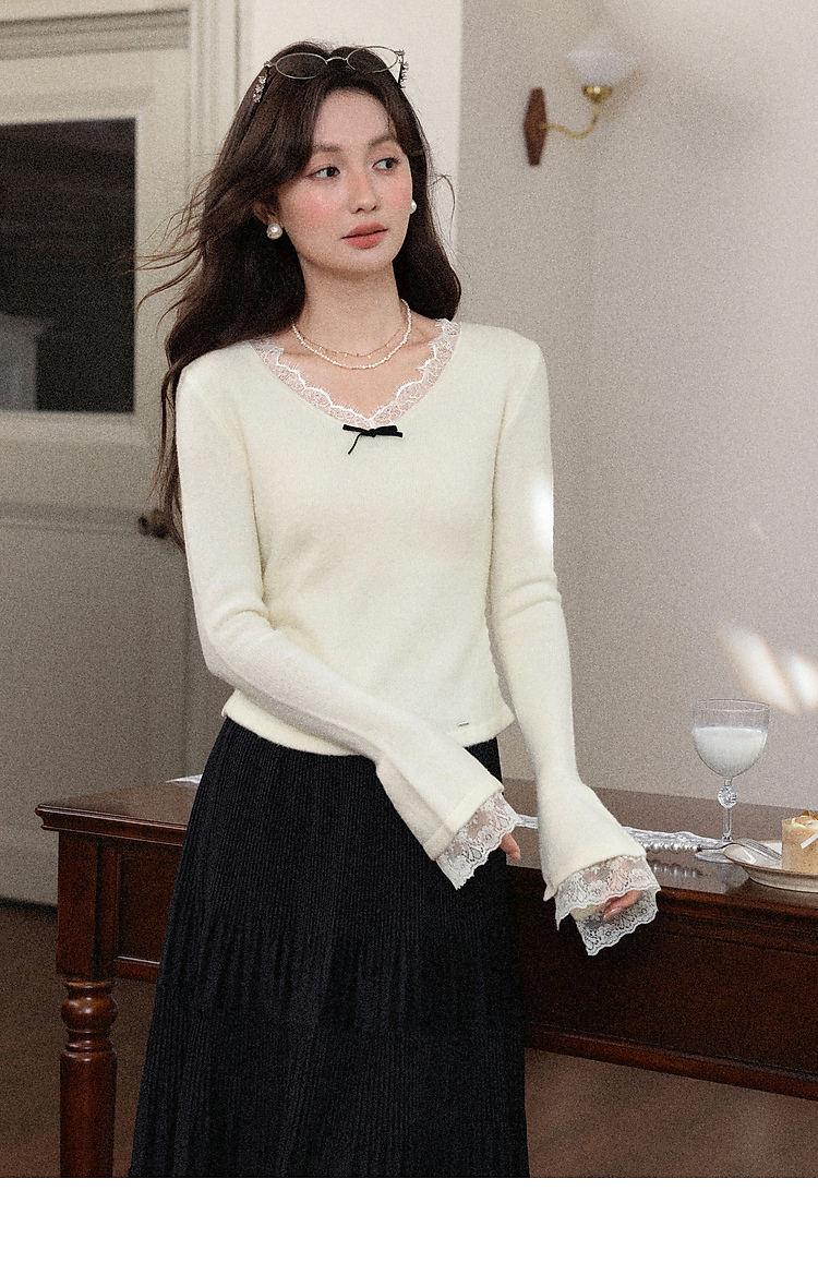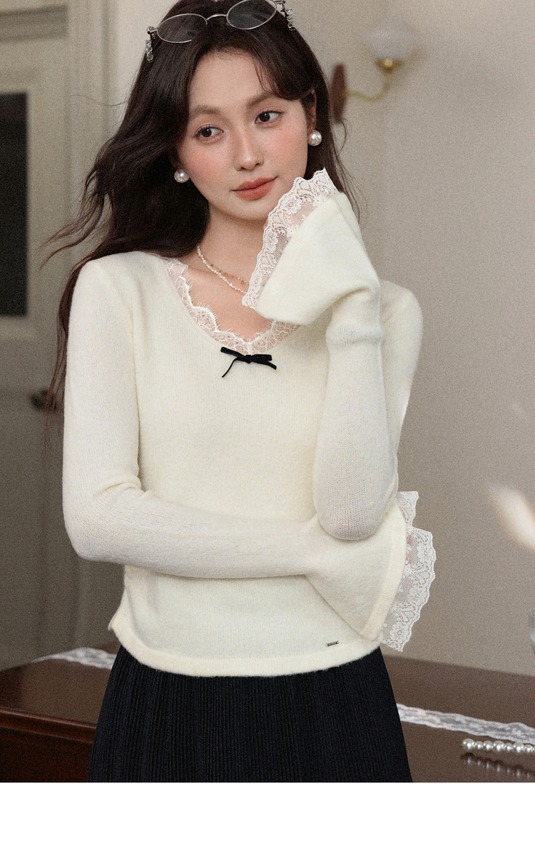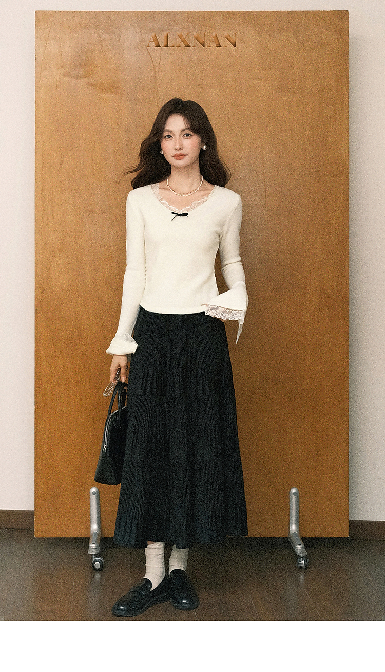 鹿向南「云杉柔雾」温柔风杏色长袖针织衫女秋冬新款修身显瘦内搭