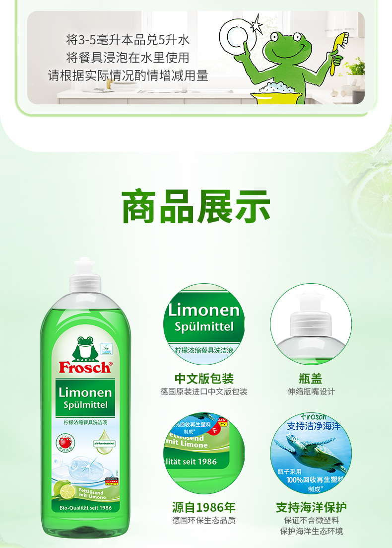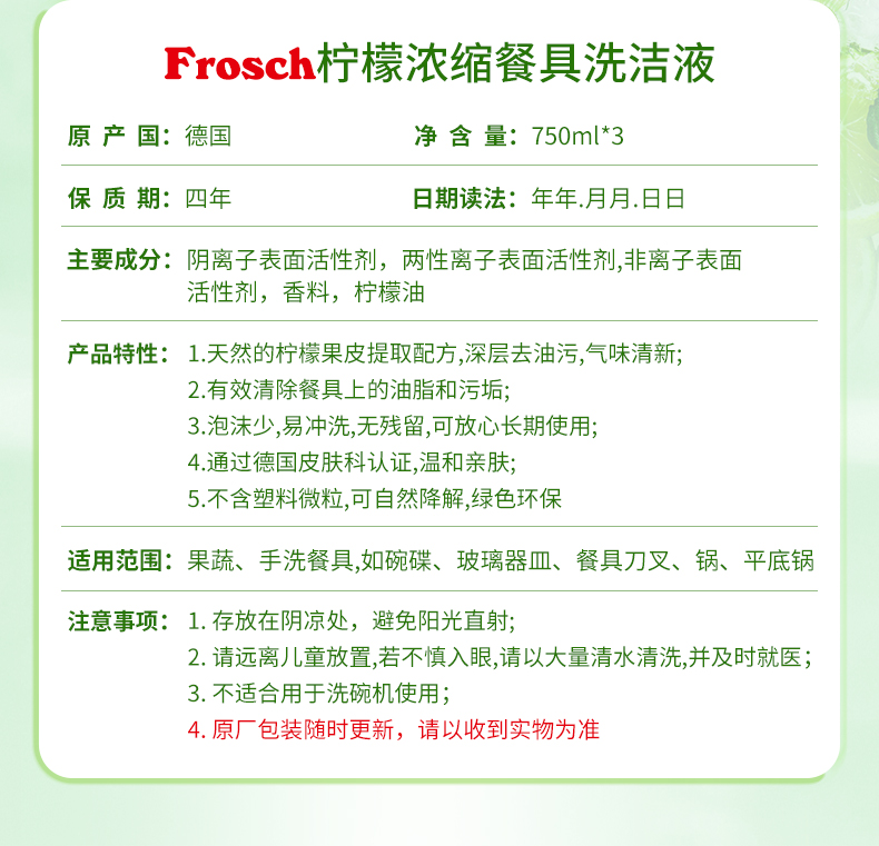 Frosch 柠檬浓缩餐具洗洁液三支装