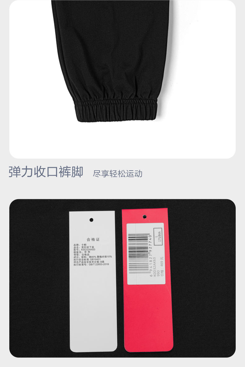 Kappa卡帕串标运动裤2023男针织长裤时尚休闲裤小脚卫裤K0D32AK63