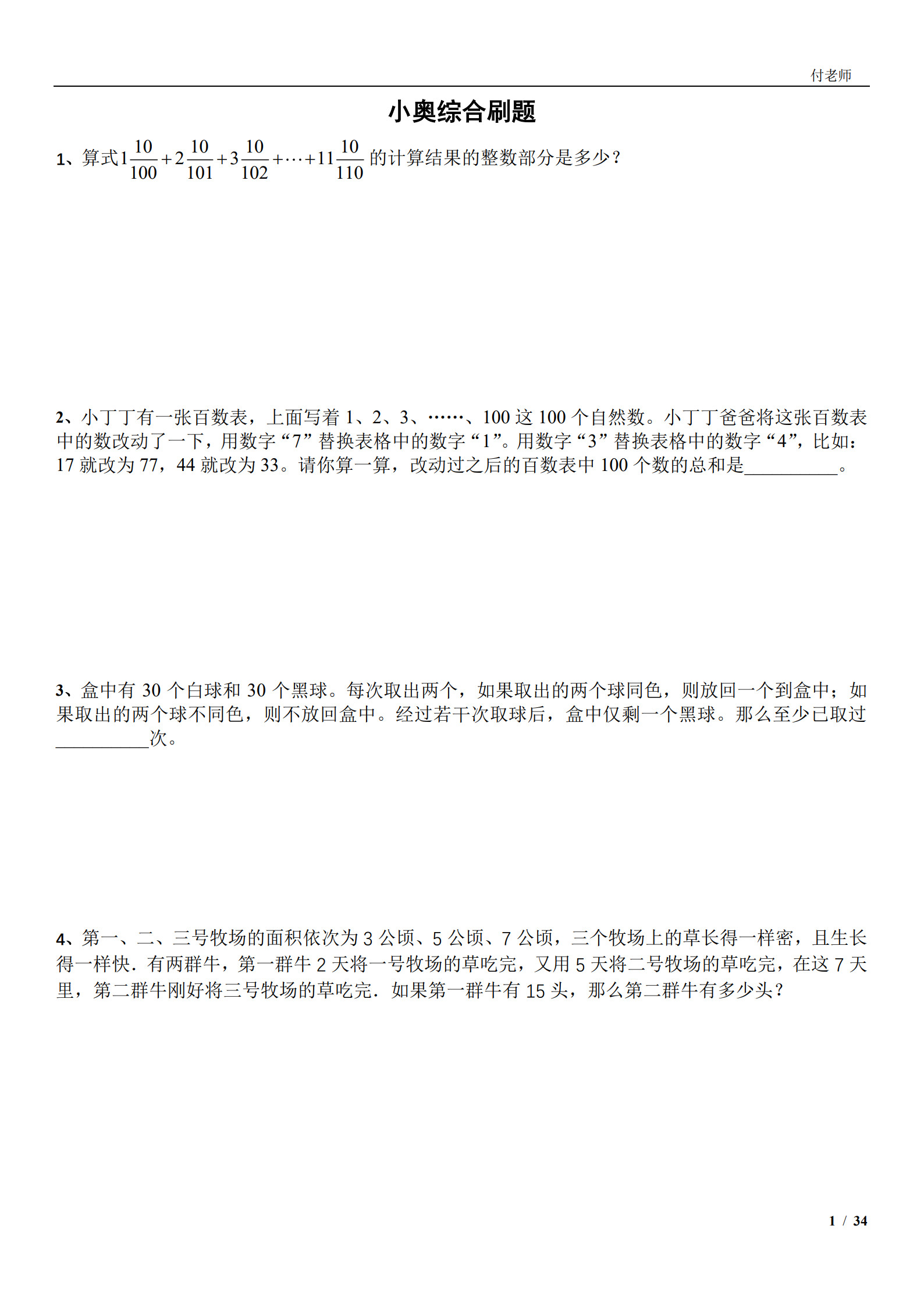 🍁综合卷内容包括,计算(裂项,巧算,公式),数论(整除,同余),几何(模型,变形,最值),应用题(工程,浓度,经济),计数(排列组合),杂题(逻辑推理,比赛问题)