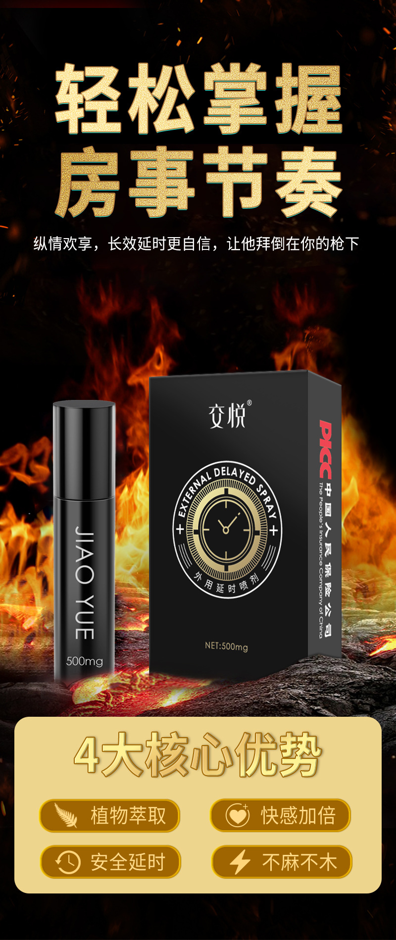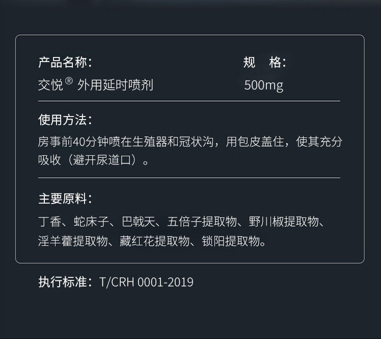 【交悦】 外用延时喷剂500mg男性房事持久情趣用品成人用品性爱
