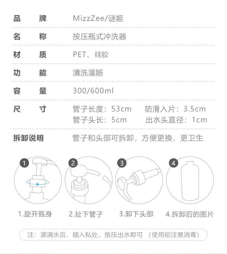 【爆品】谜姬 按压瓶式冲洗器灌肠清洗后庭消毒 SM