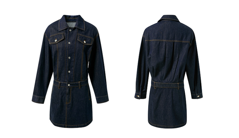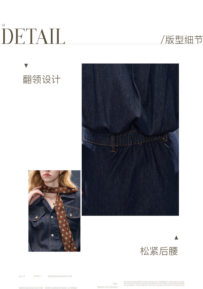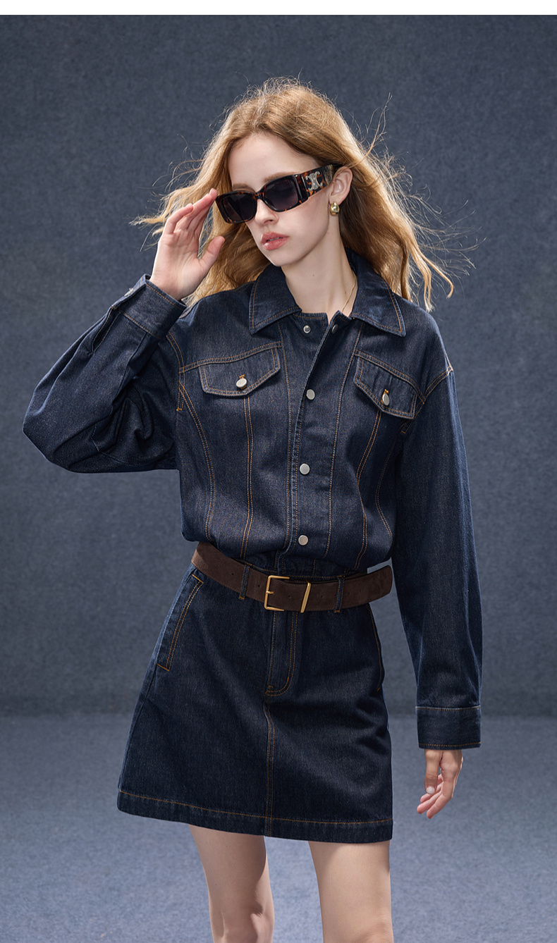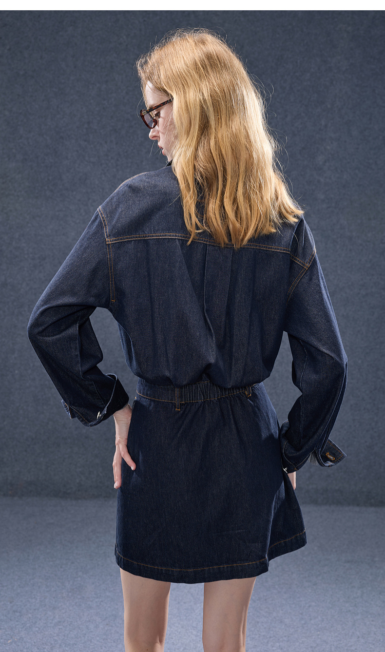 【100棉】三彩2025秋季新款翻领牛仔裙连衣裙直筒短裙甜酷M