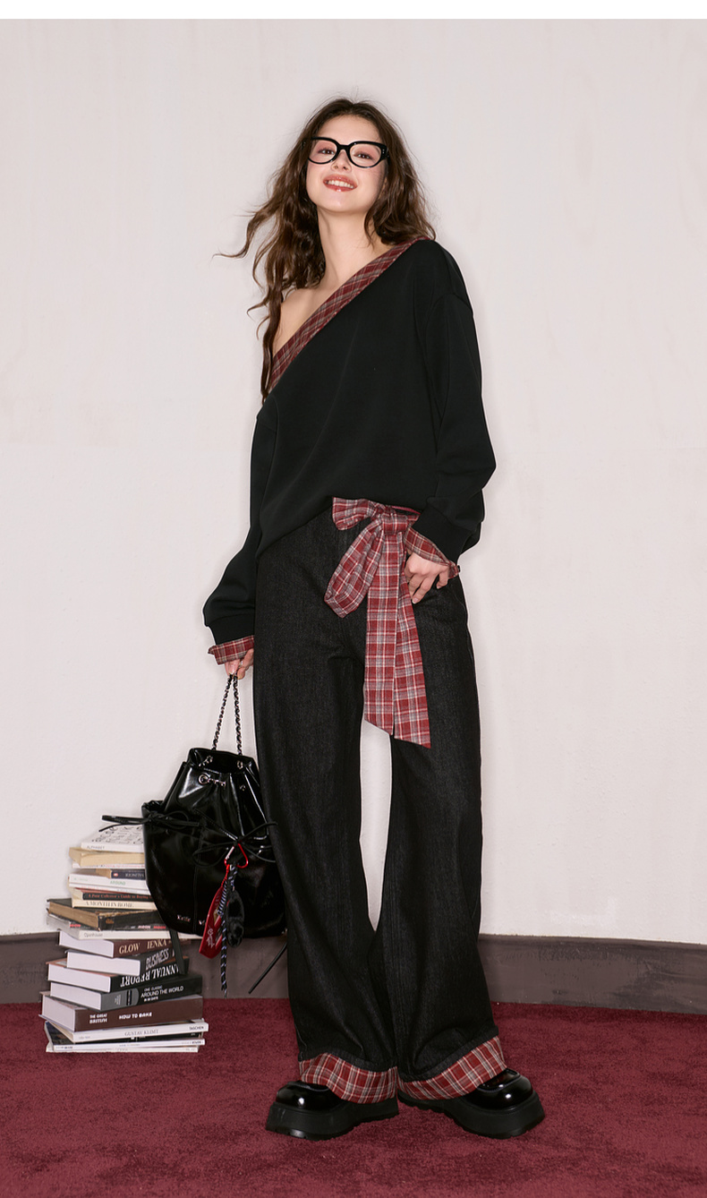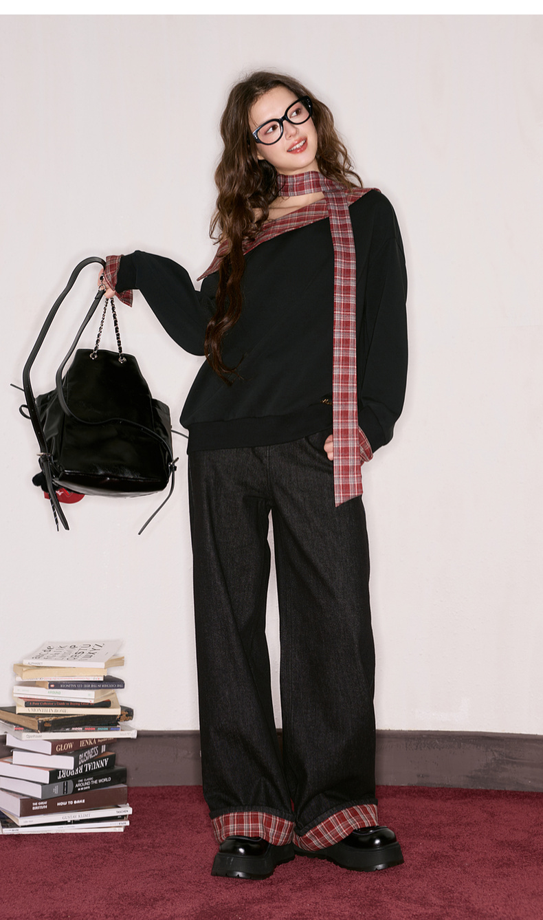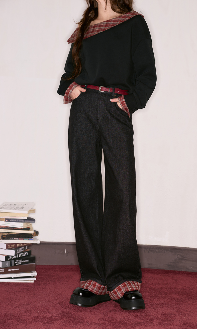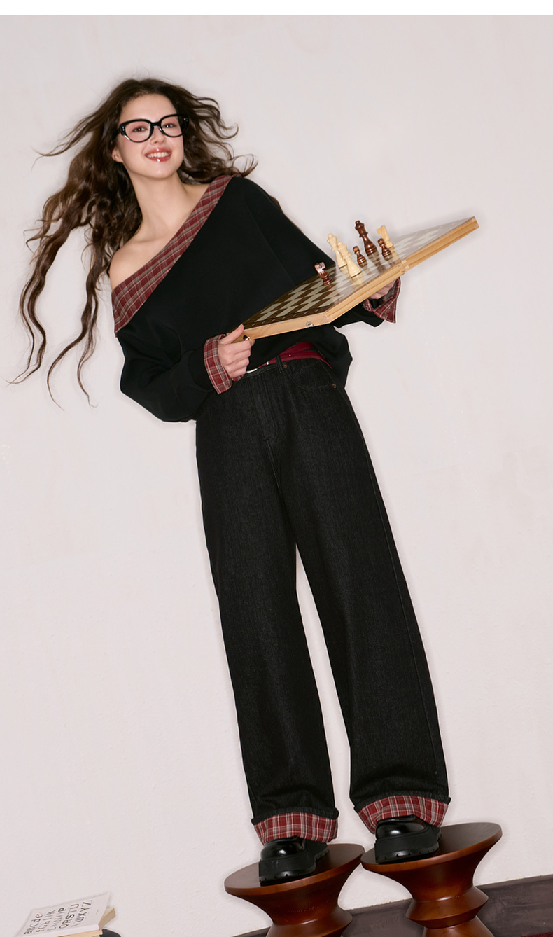 三彩独醒2025秋季新款宽松高腰直筒裤牛仔裤长裤F