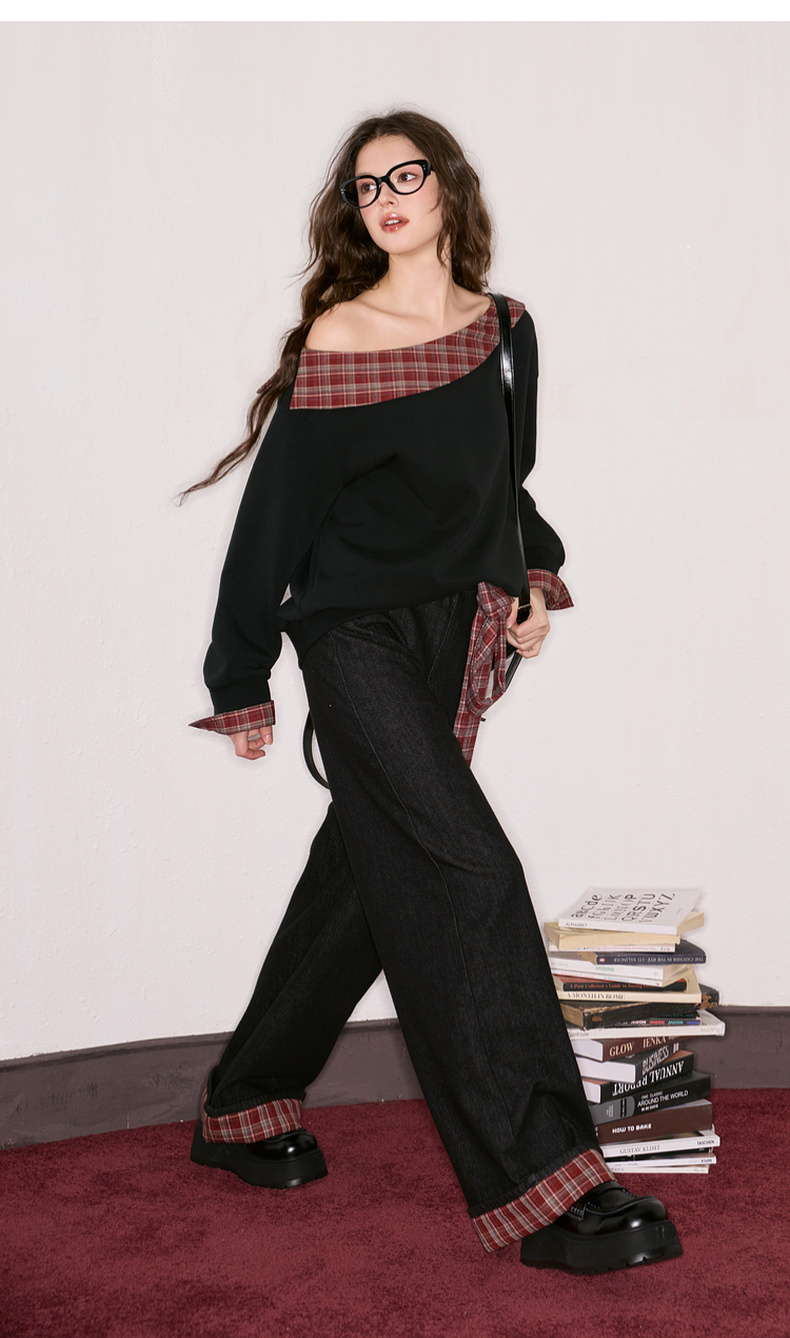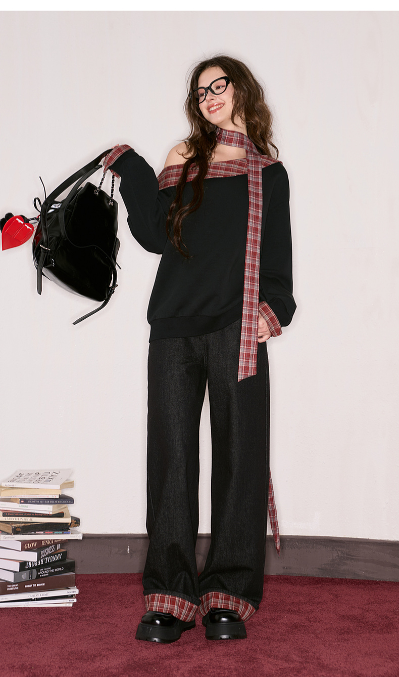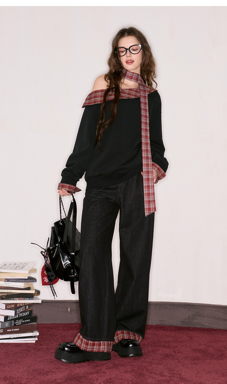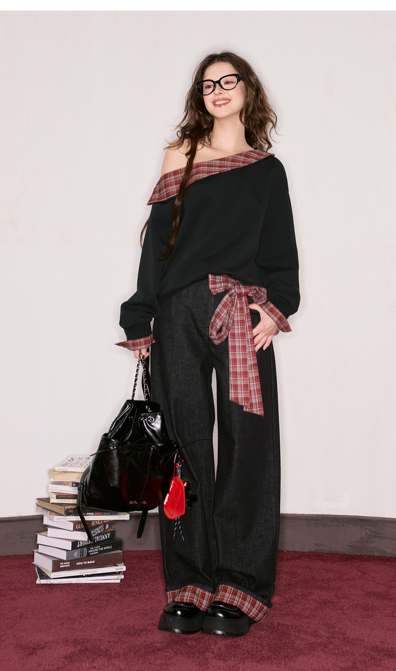三彩独醒2025秋季新款宽松高腰直筒裤牛仔裤长裤F
