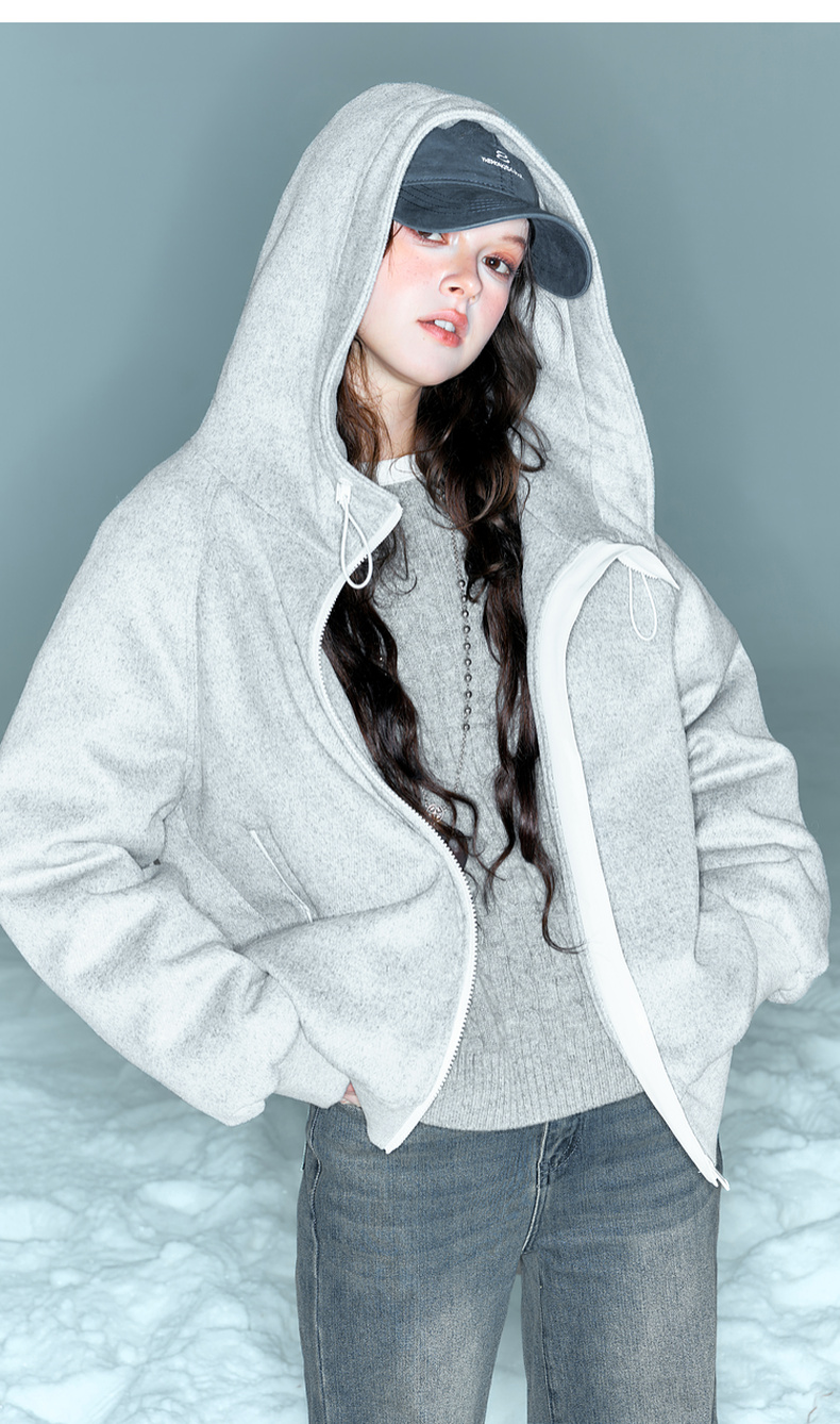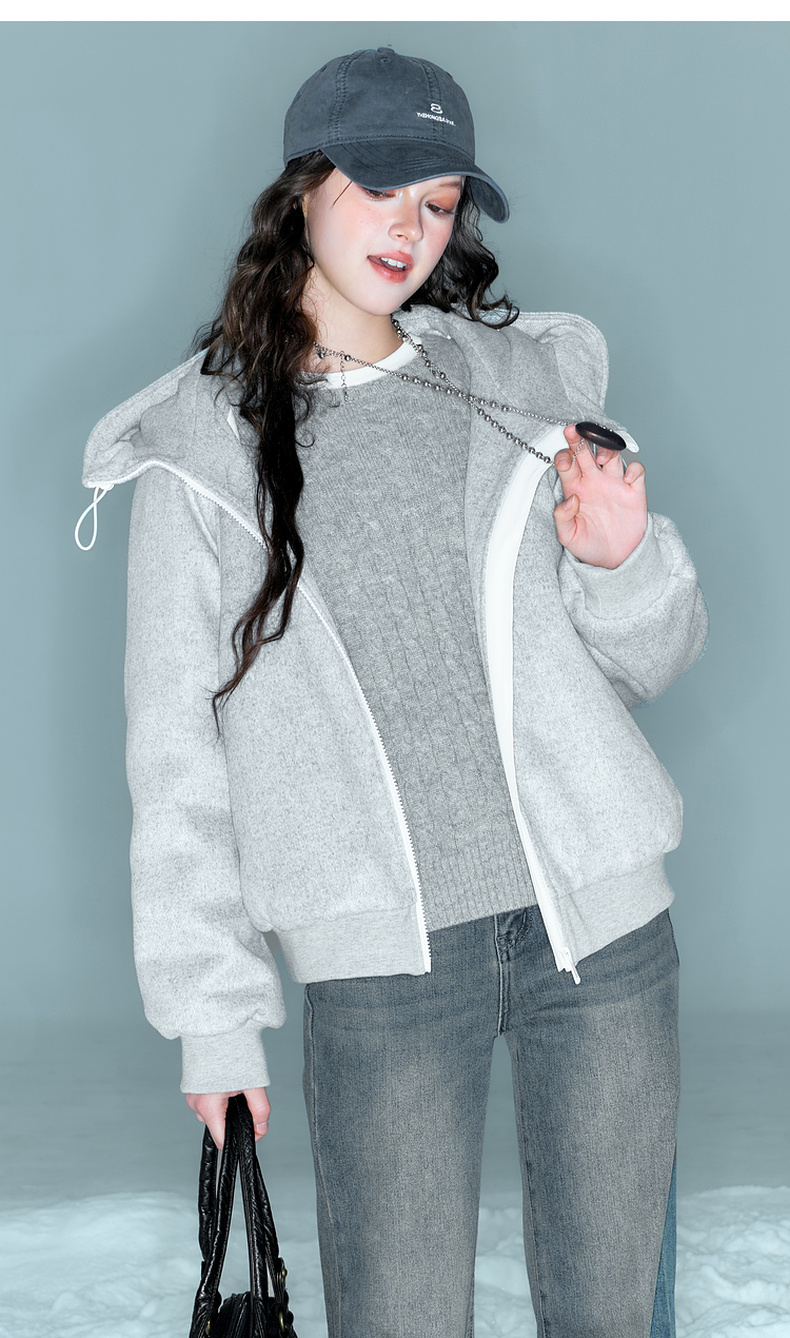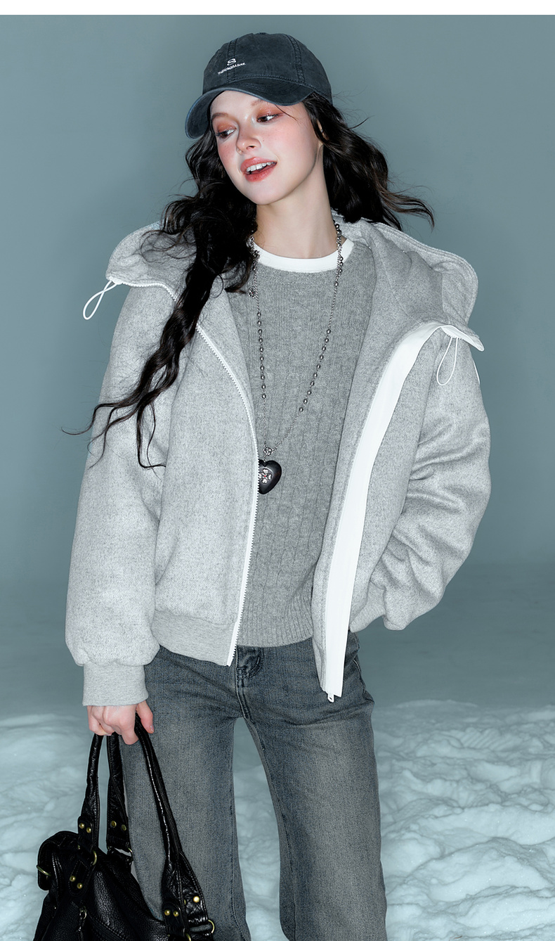 【90白鹅绒】三彩2025冬季新款卫衣式潮流羽绒服短款连帽保暖M