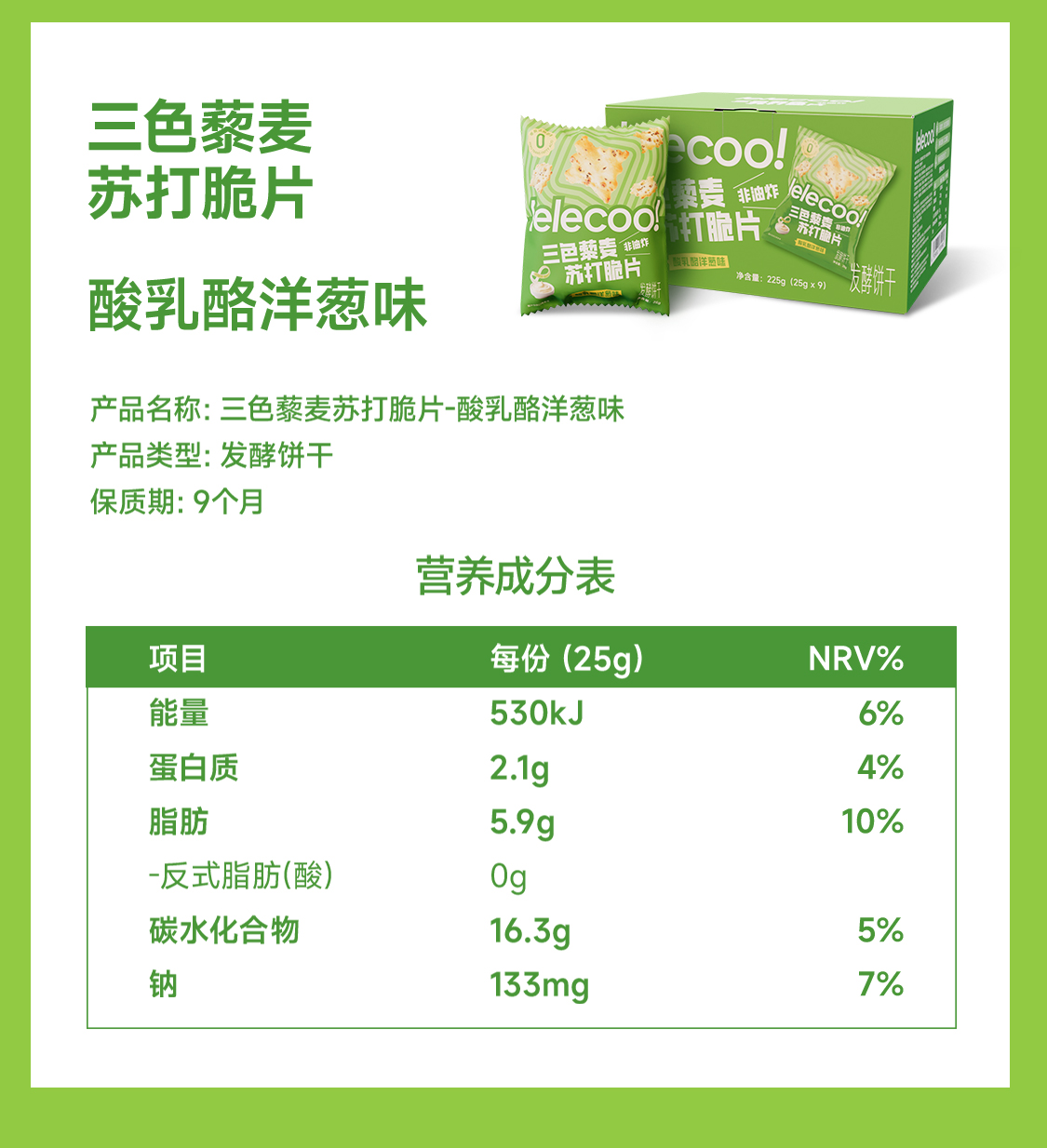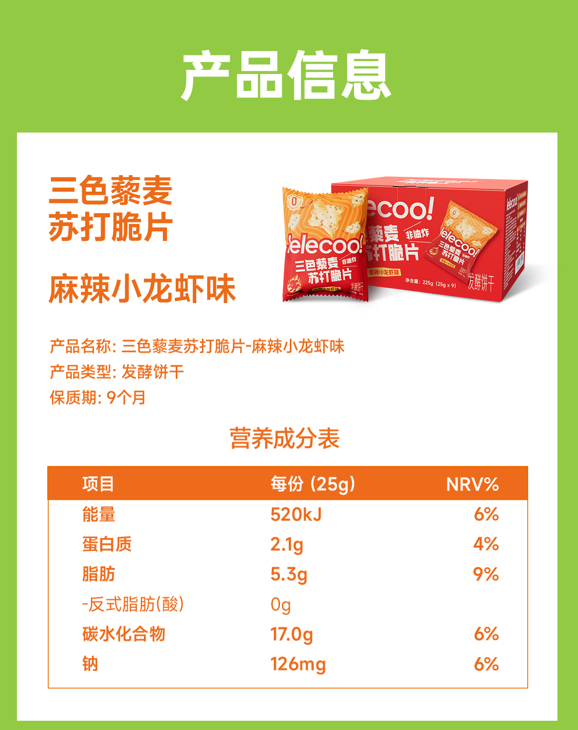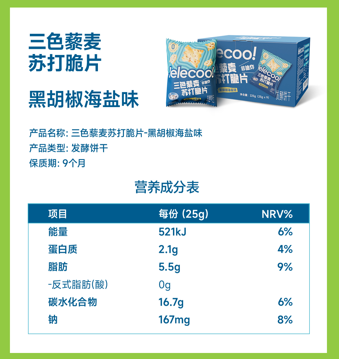 【lelecool】三色藜麦苏打脆片咸香酥脆非油炸9袋/箱