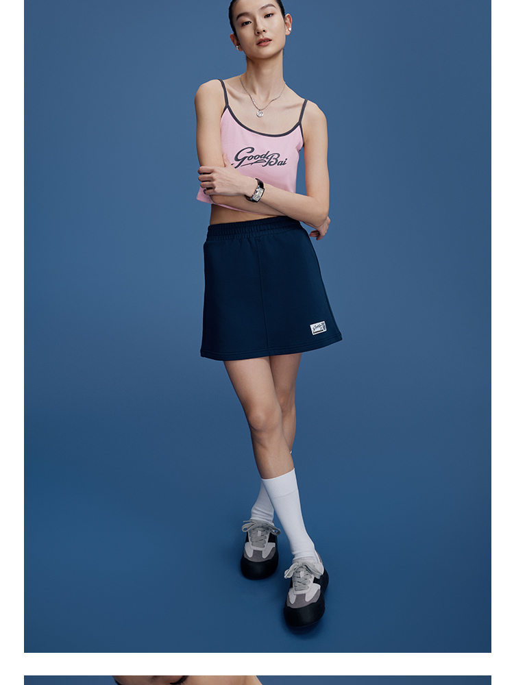 GOODBAI刺绣标弹力A字半裙
