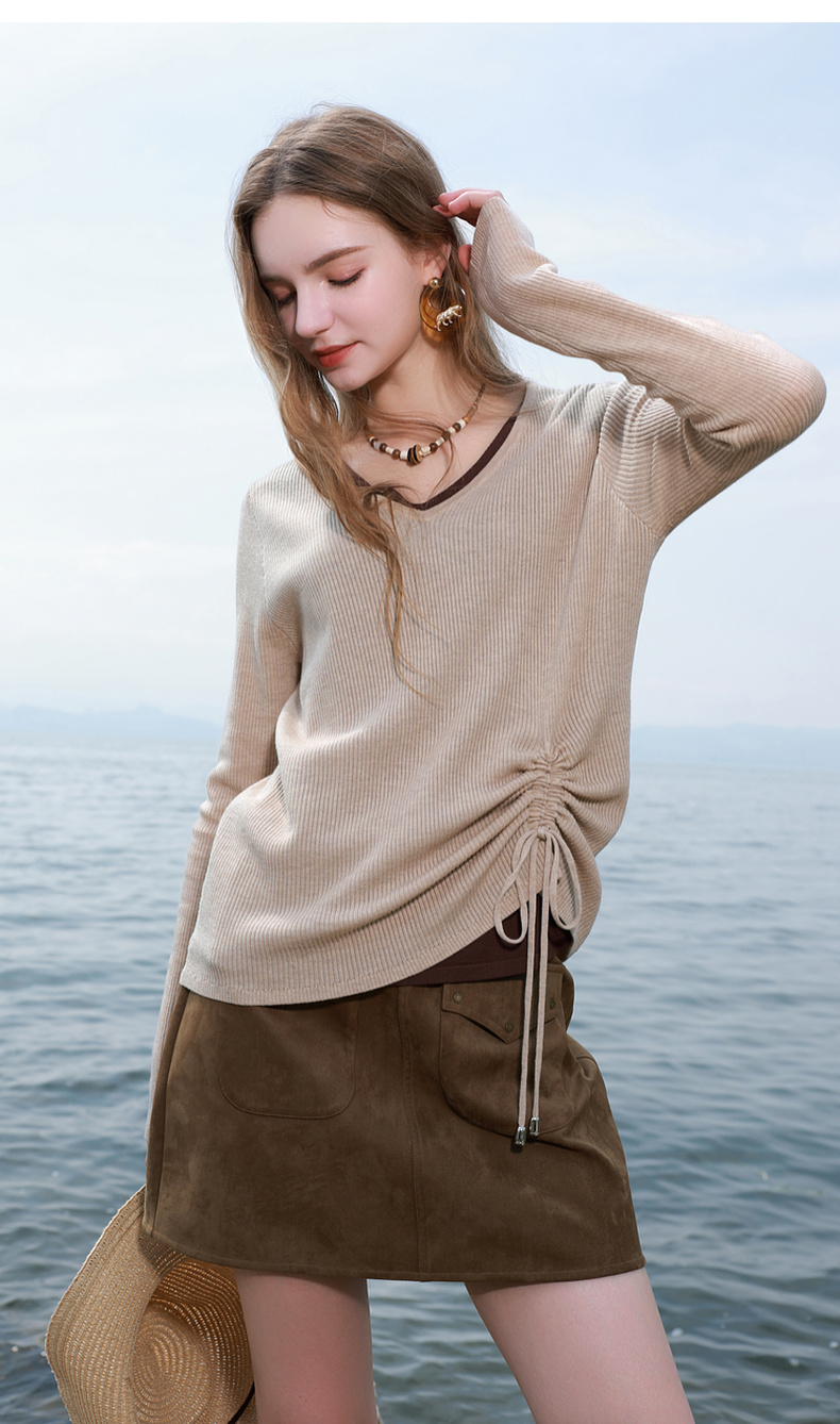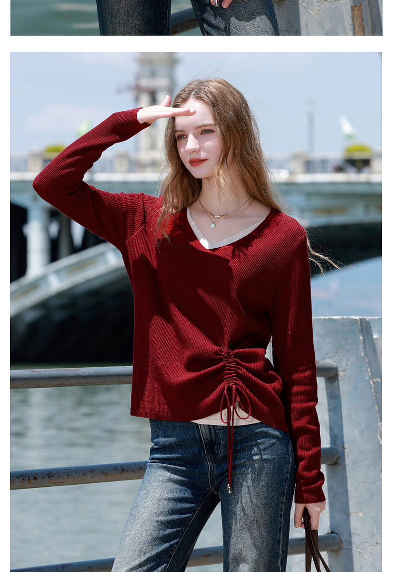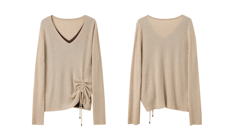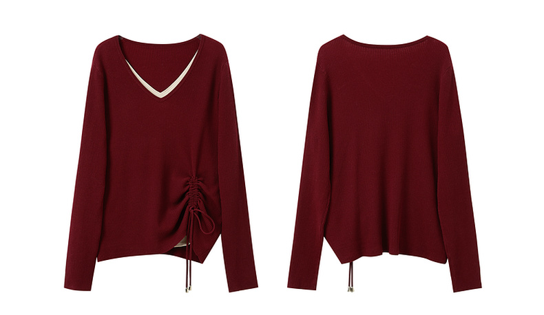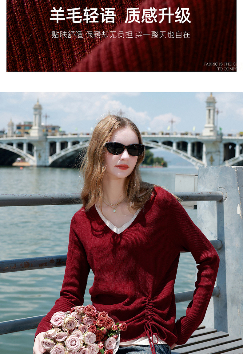 三彩2025秋季新款假两件针织衫V领毛衫长袖套头休闲M