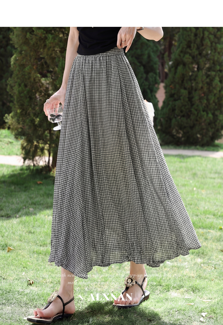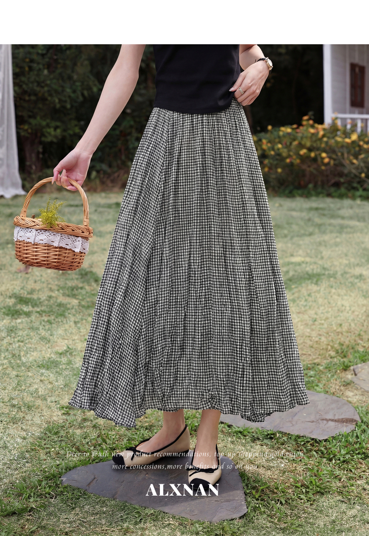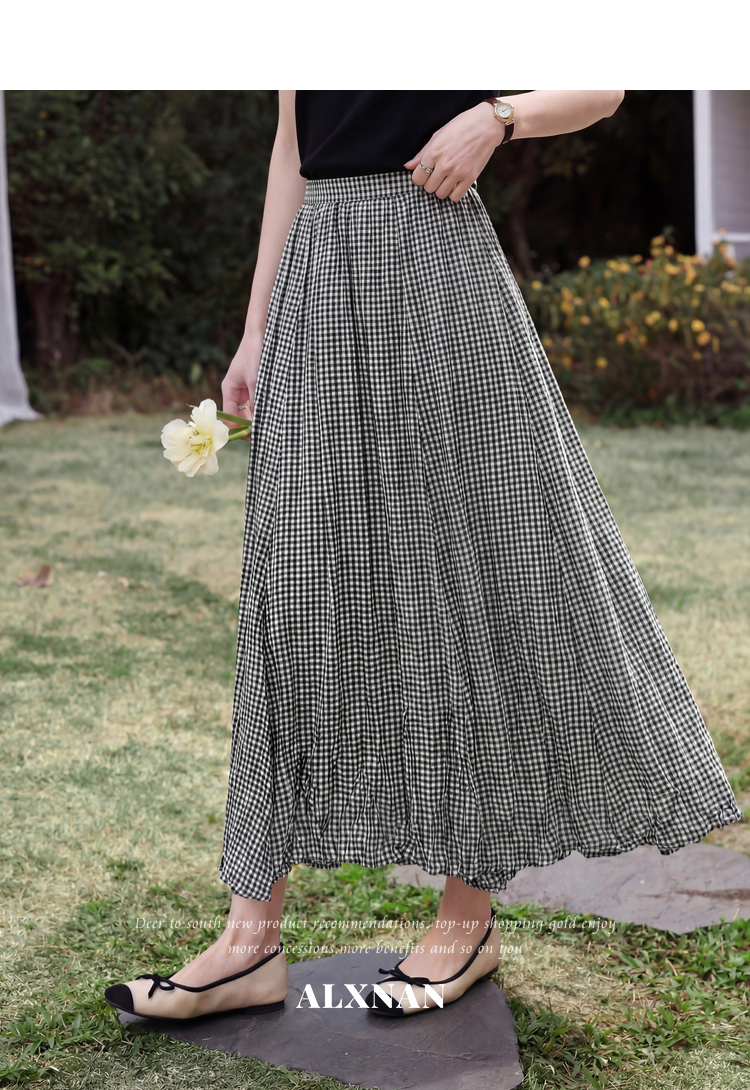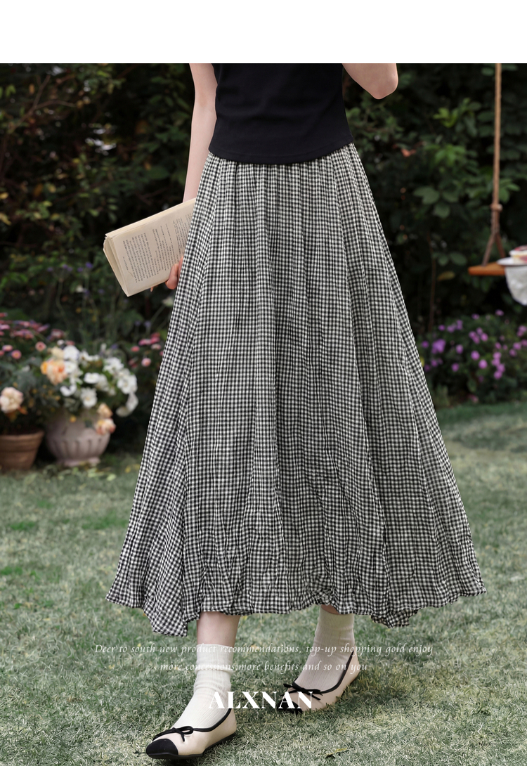 鹿向南【0407/20:00新品】黑色格子半身裙
