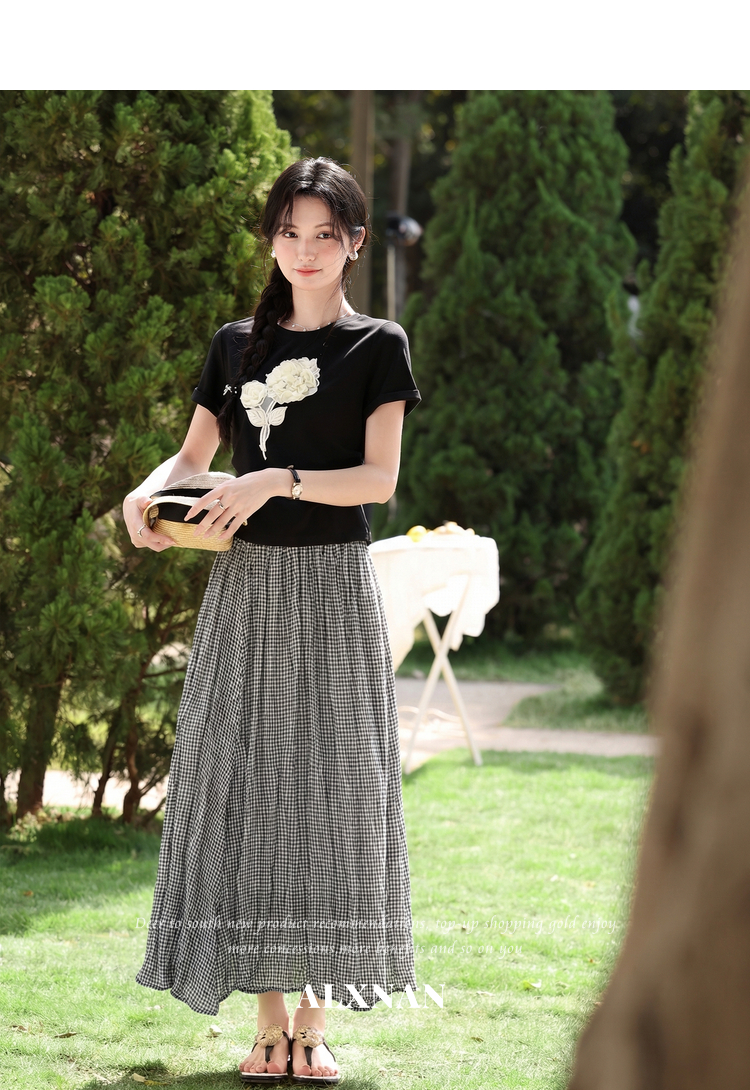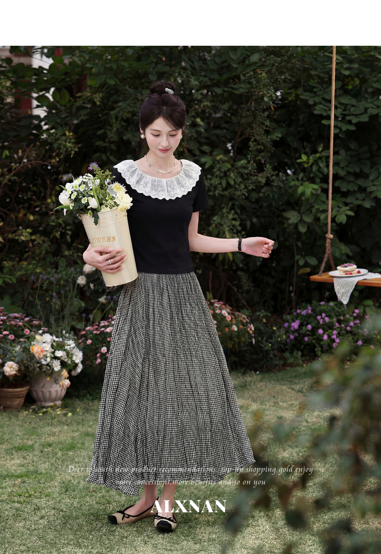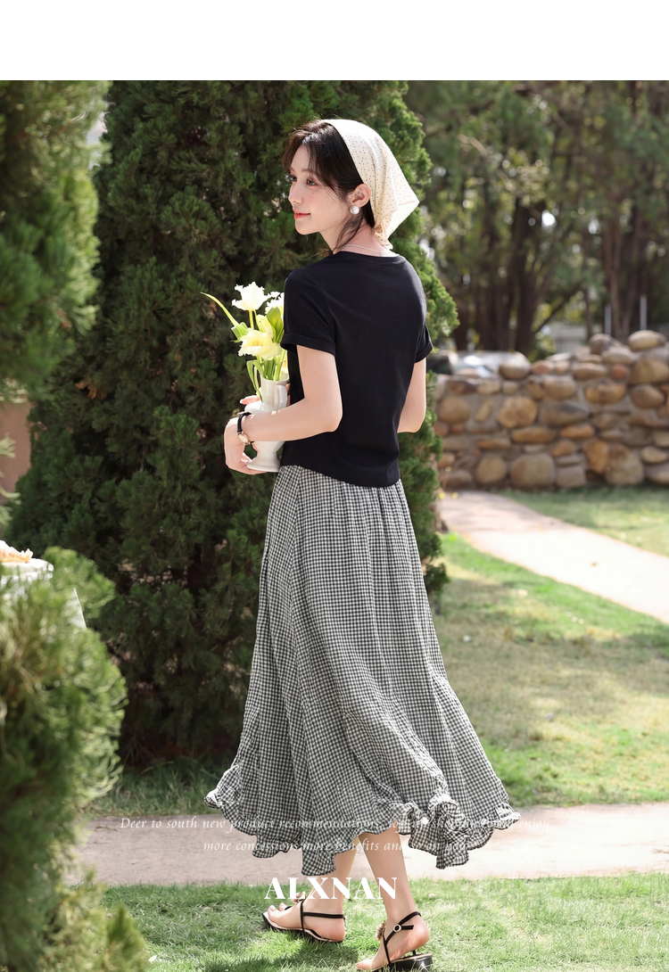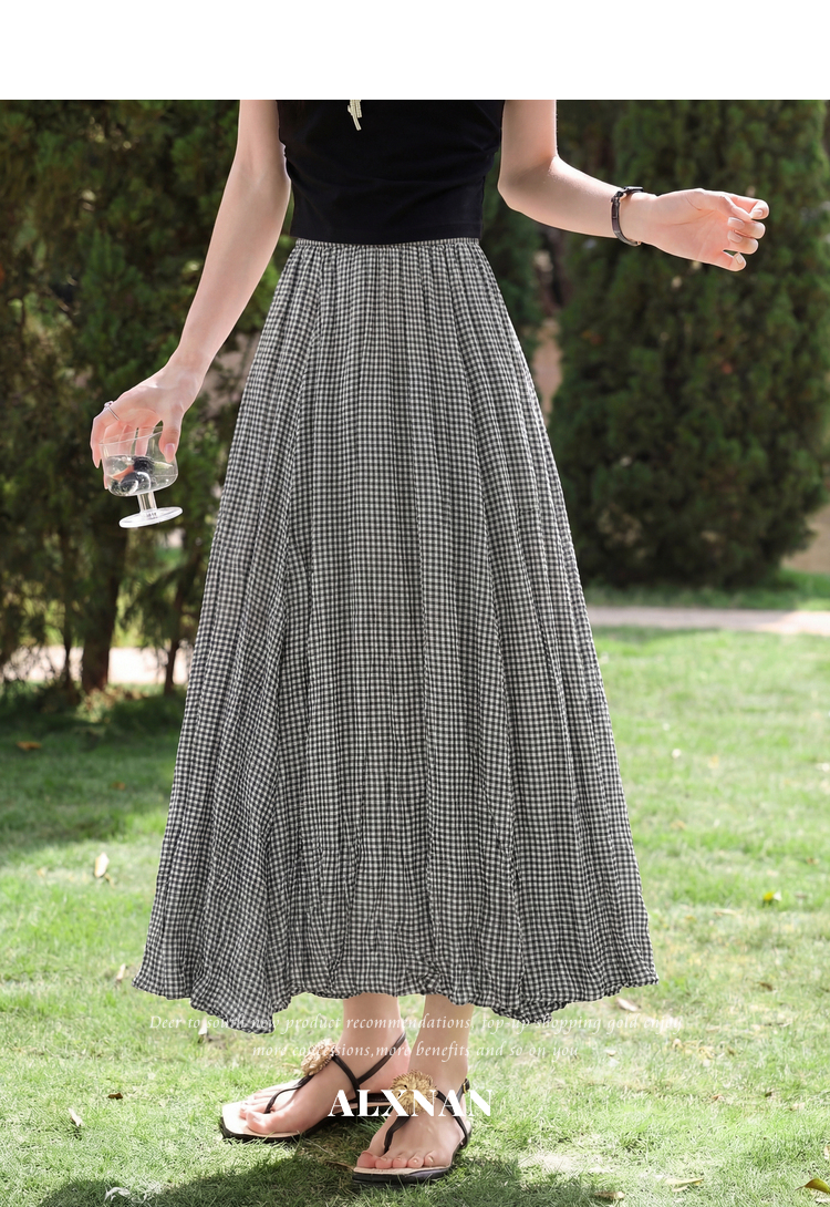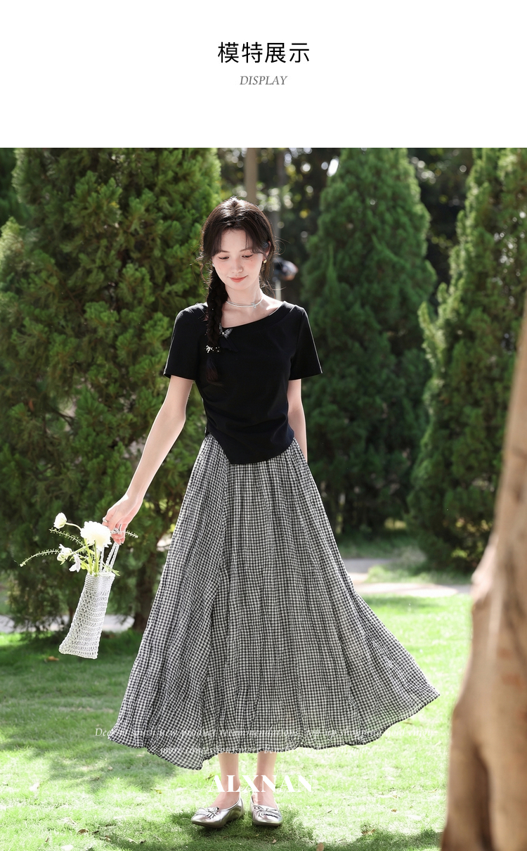 鹿向南【0407/20:00新品】黑色格子半身裙