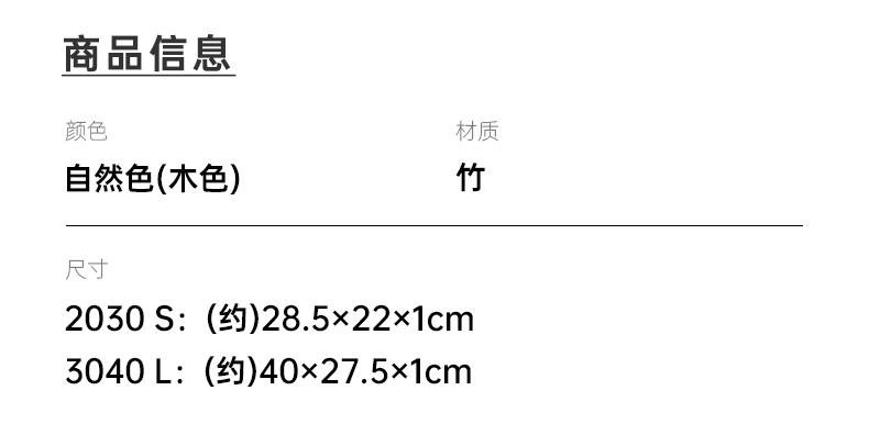 轻薄竹砧板 S:(约)28.5x22x1cm/L:(约)40x27.5x1cm