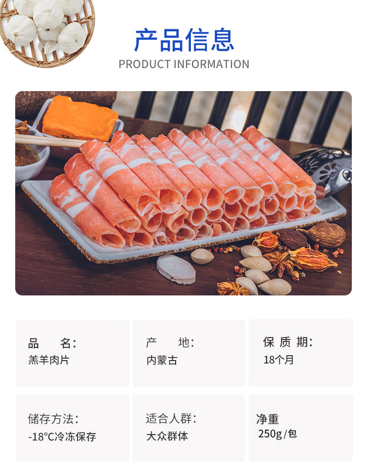 【纹理清晰】羔羊部落 羊肉卷 250g*4包 满口留香
