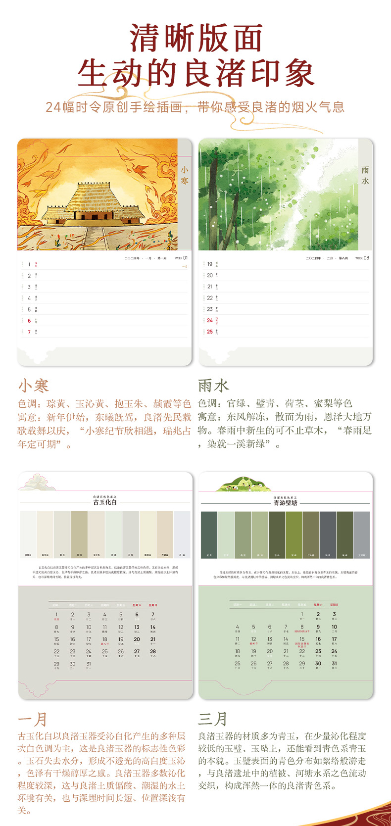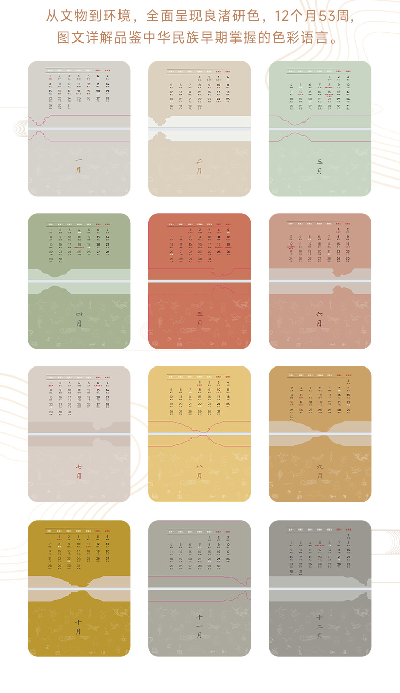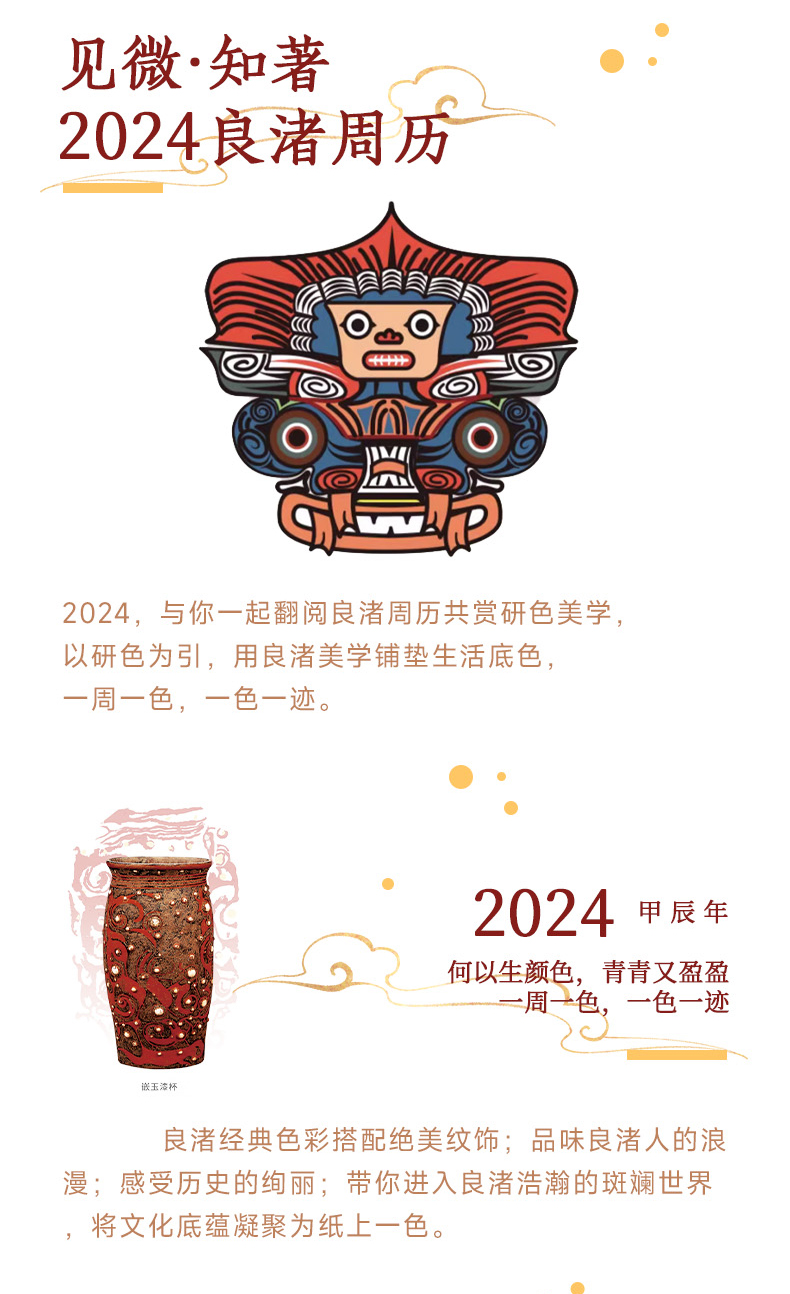 2024良渚周历 色彩鲜艳 丰富的良渚文化元素