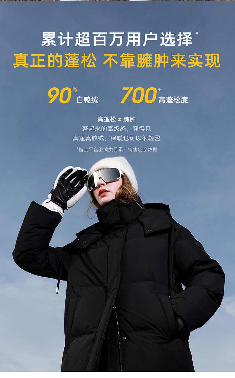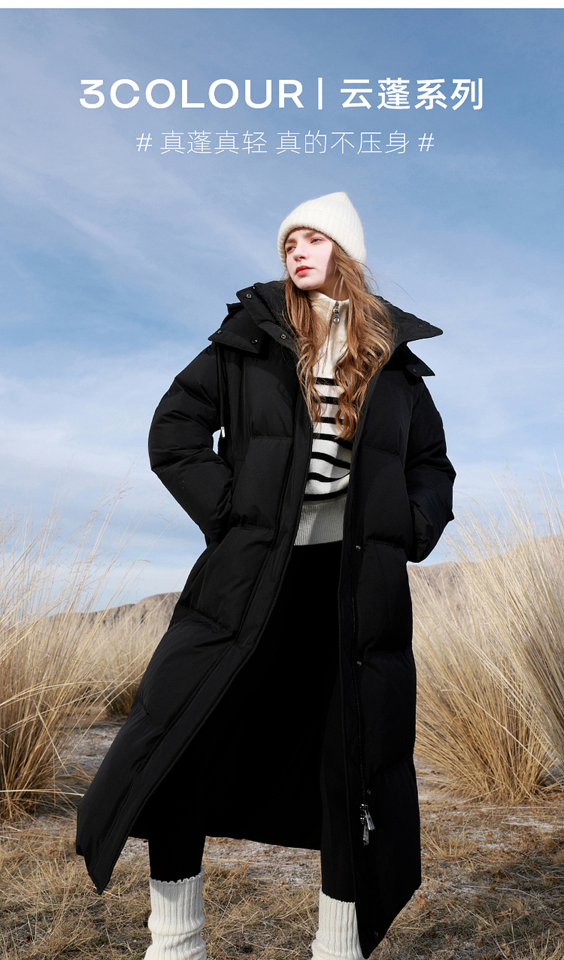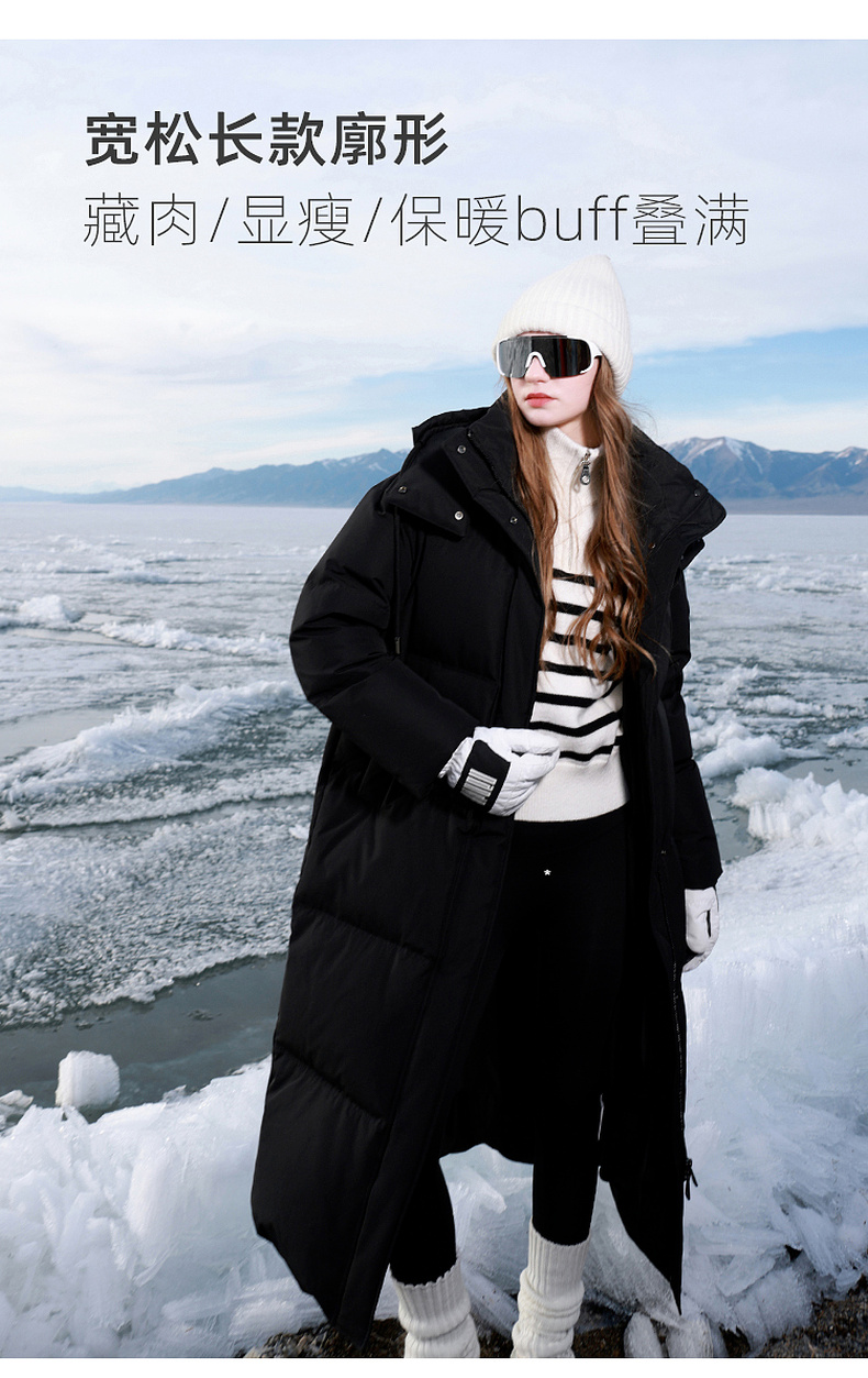 【高蓬高充绒】三彩2025冬季新款三防羽绒服长款90白鸭绒被子服M