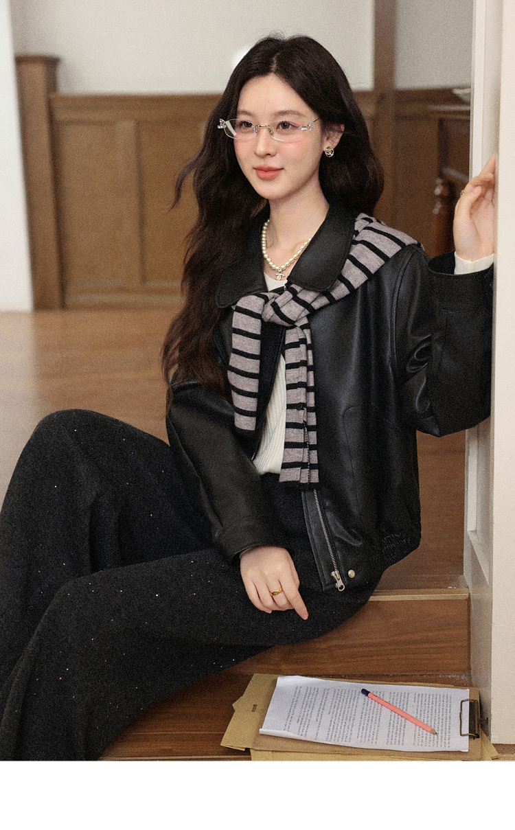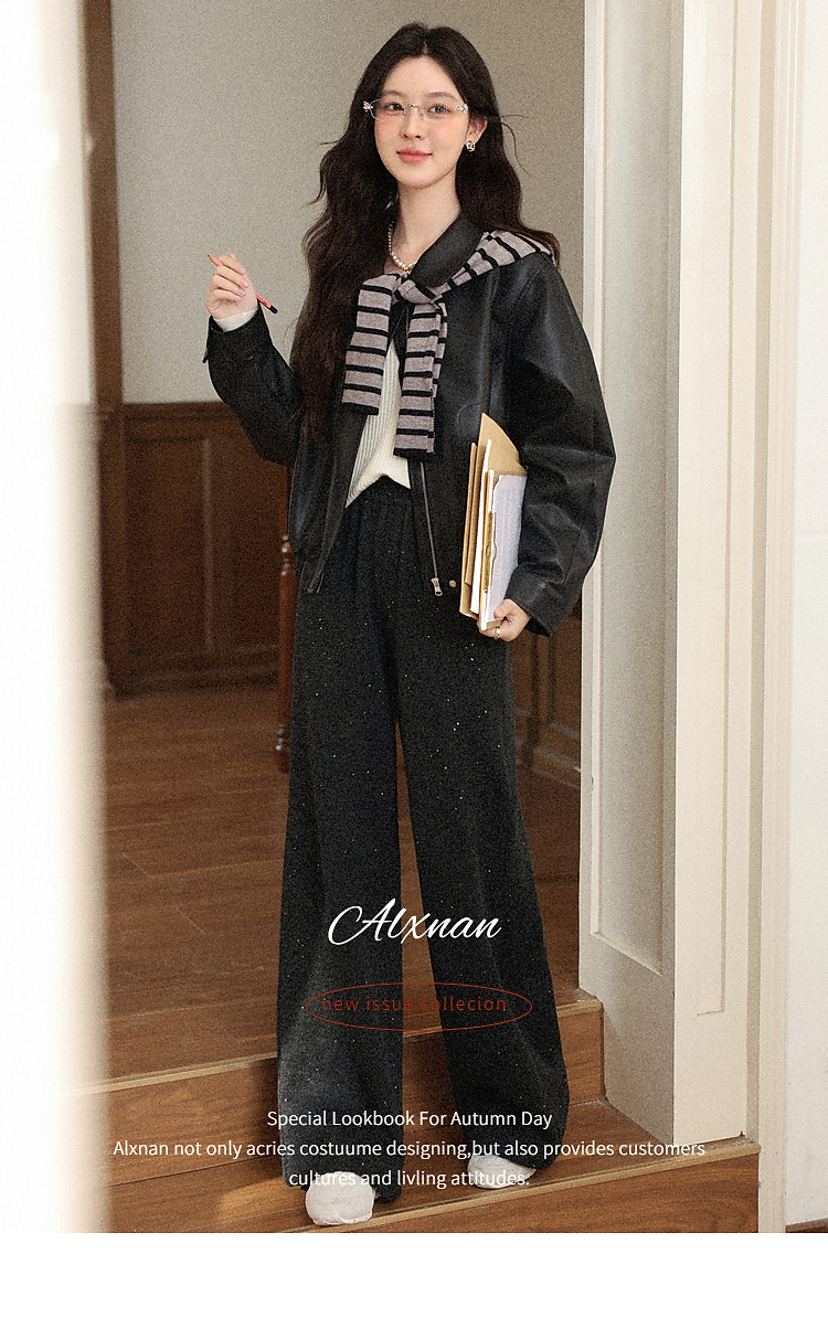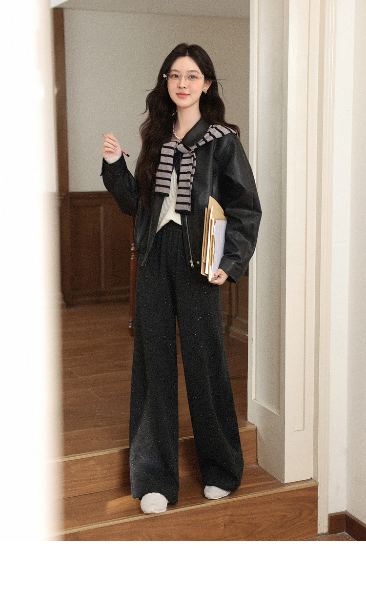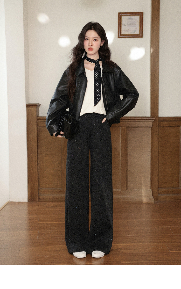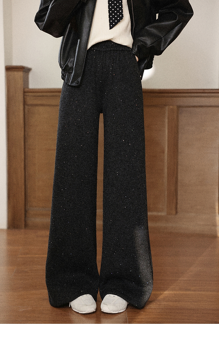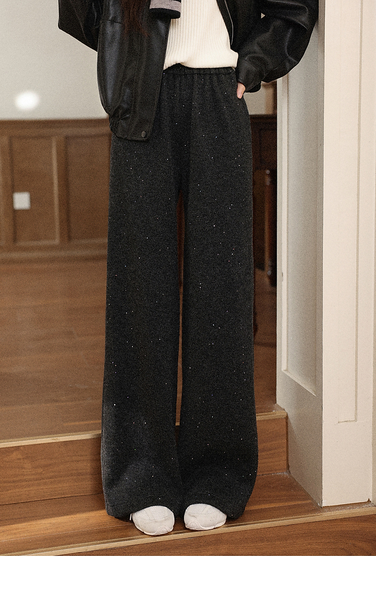 鹿向南「垂影流光」黑灰色阔腿裤女今年流行秋冬加绒加厚休闲裤子