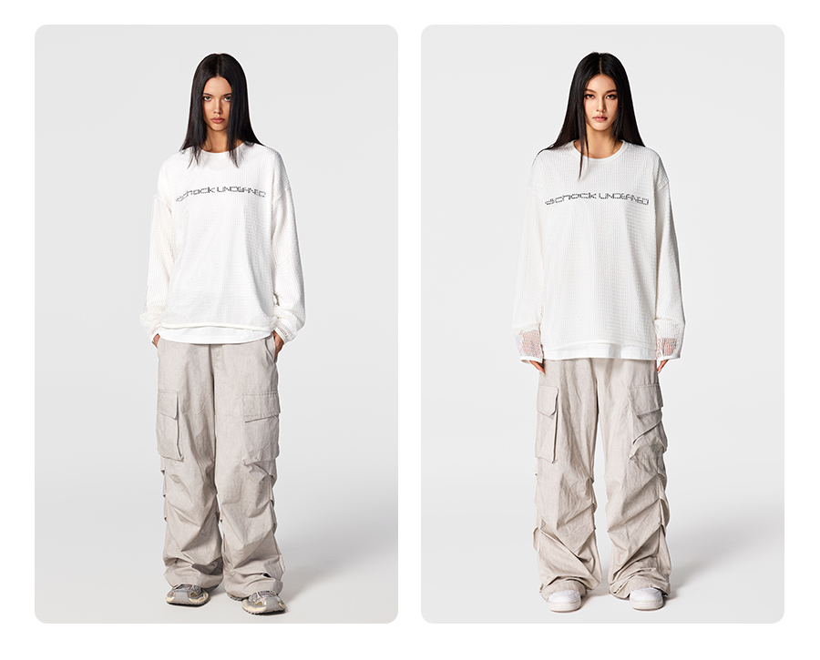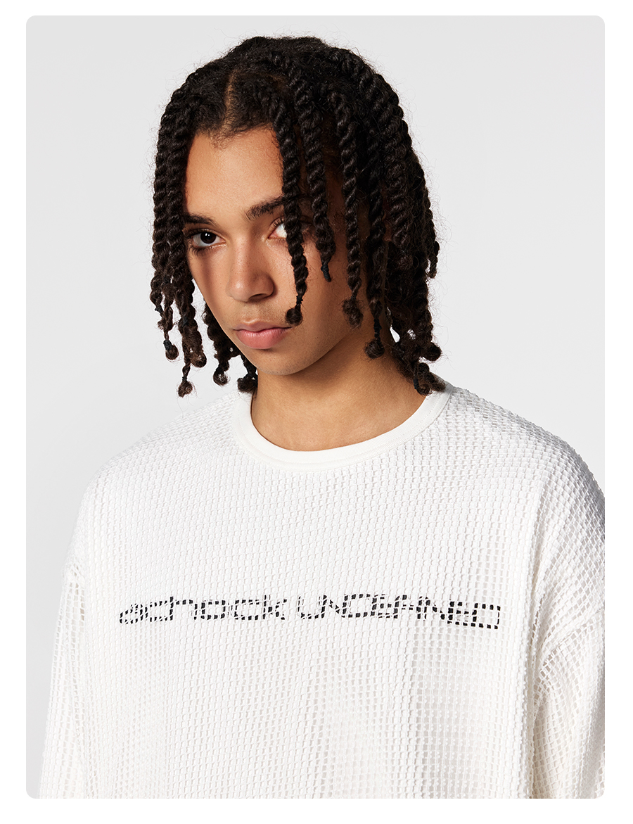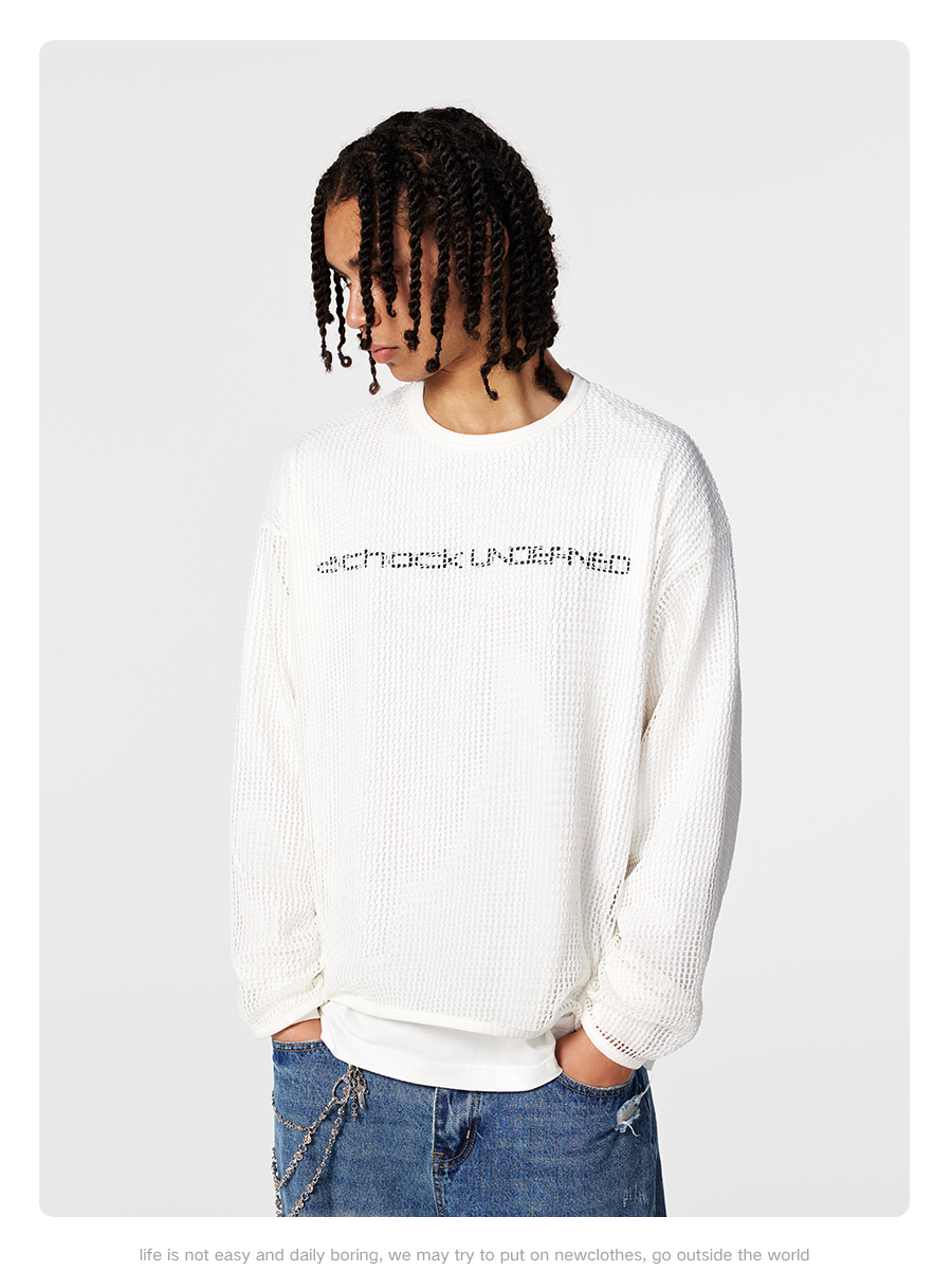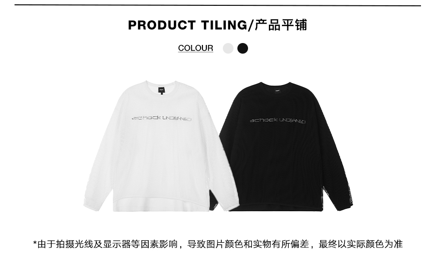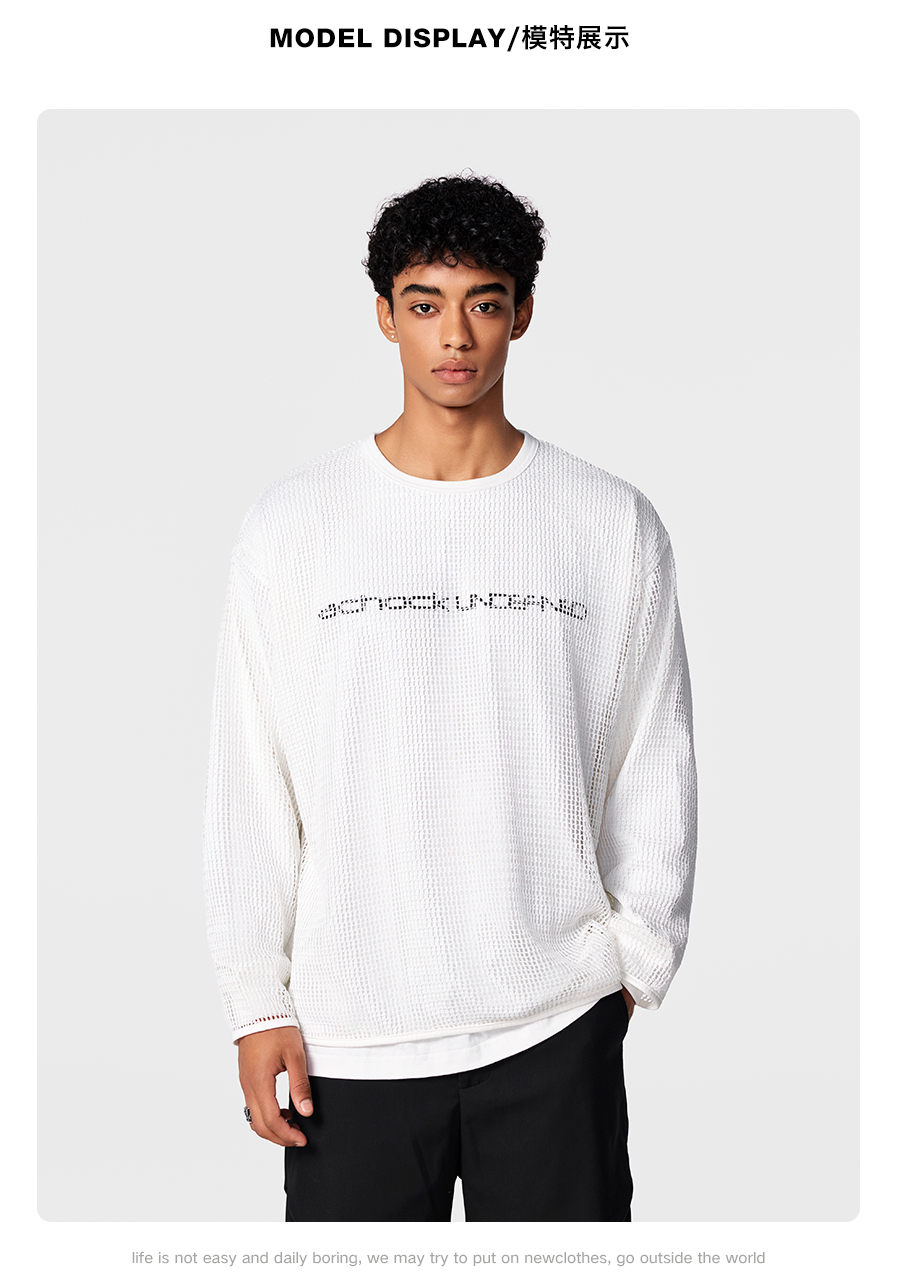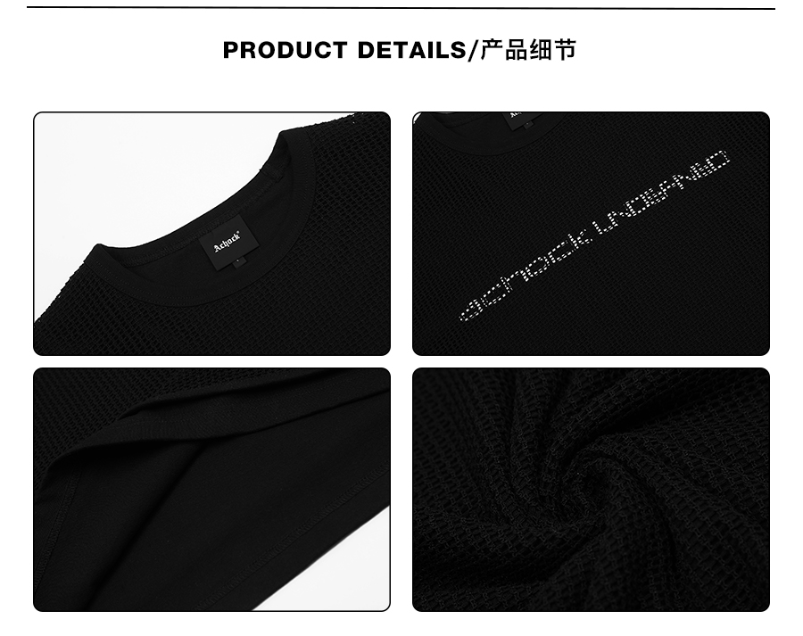 【Achock官方店】潮牌假两件重工镂空印花t恤男国潮重磅圆领卫衣