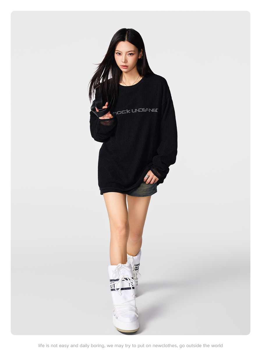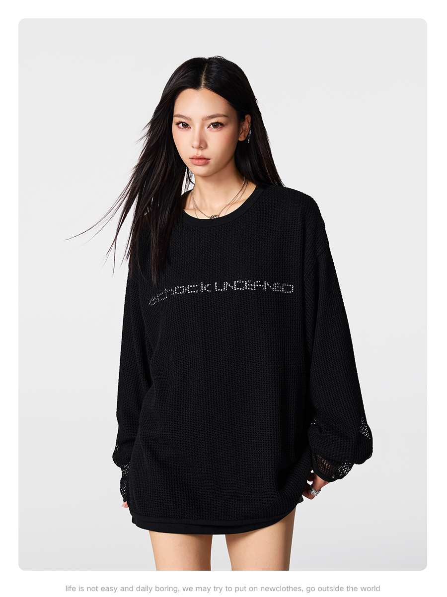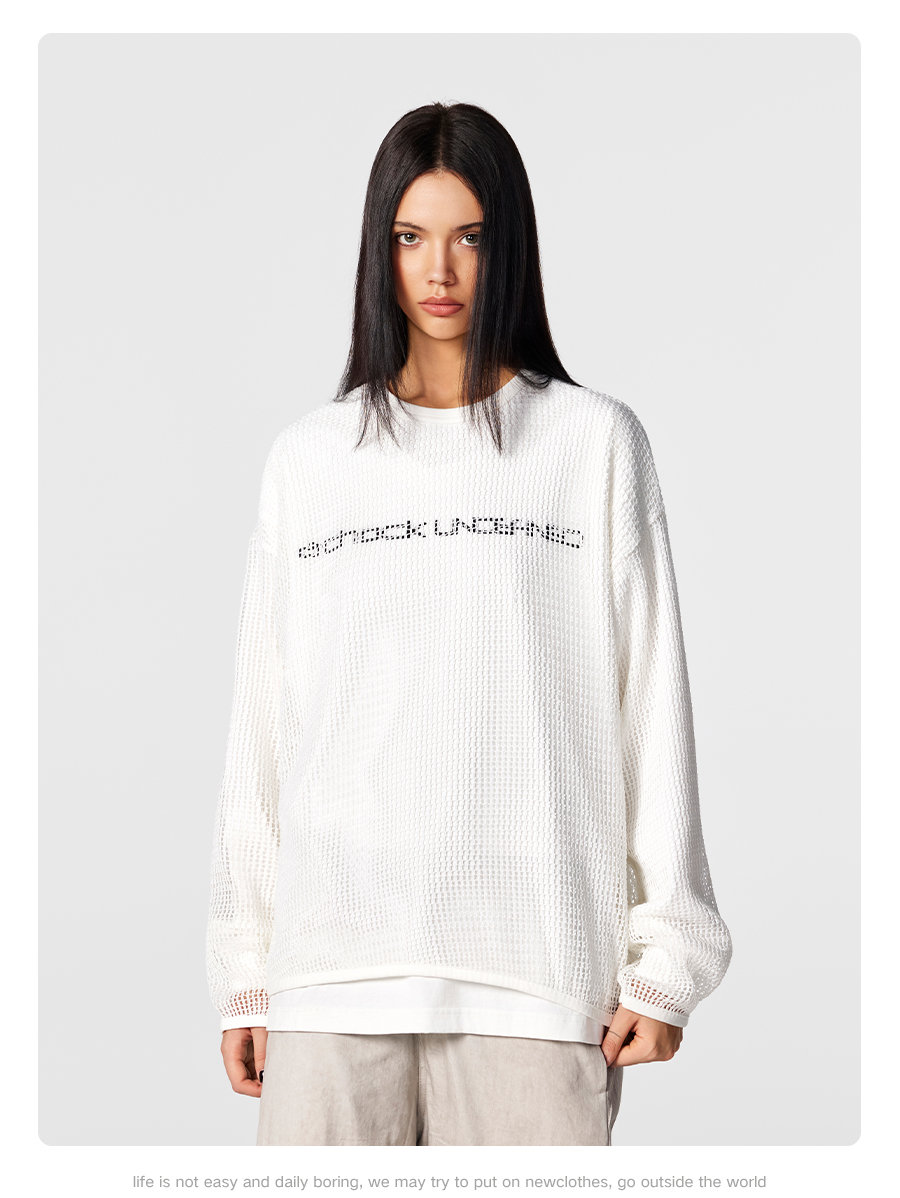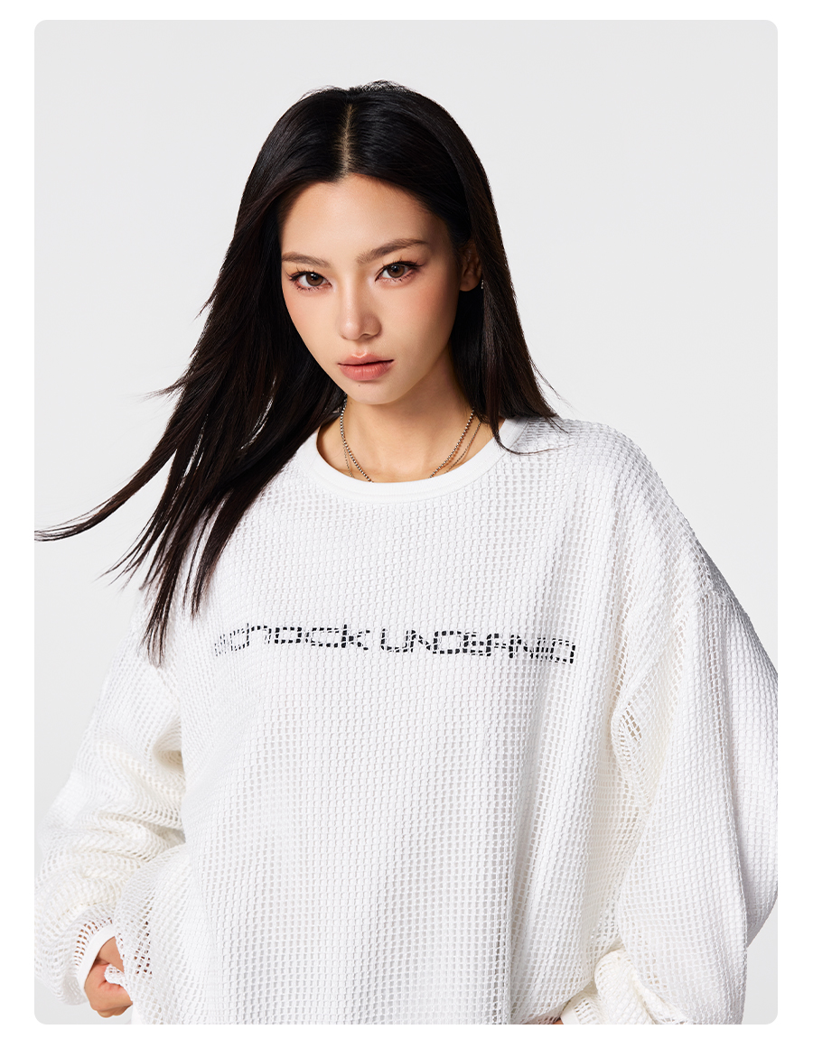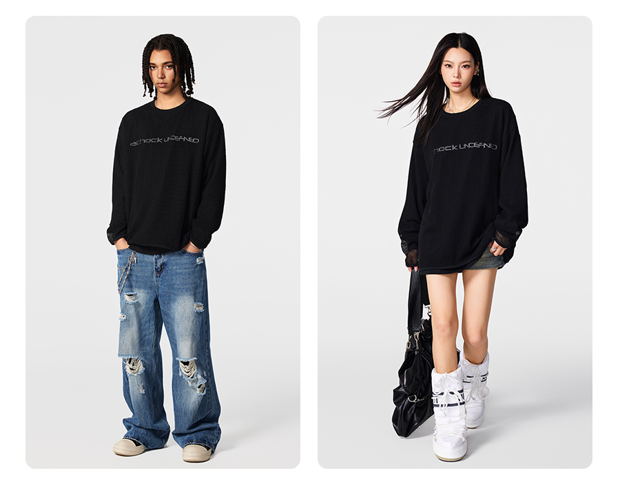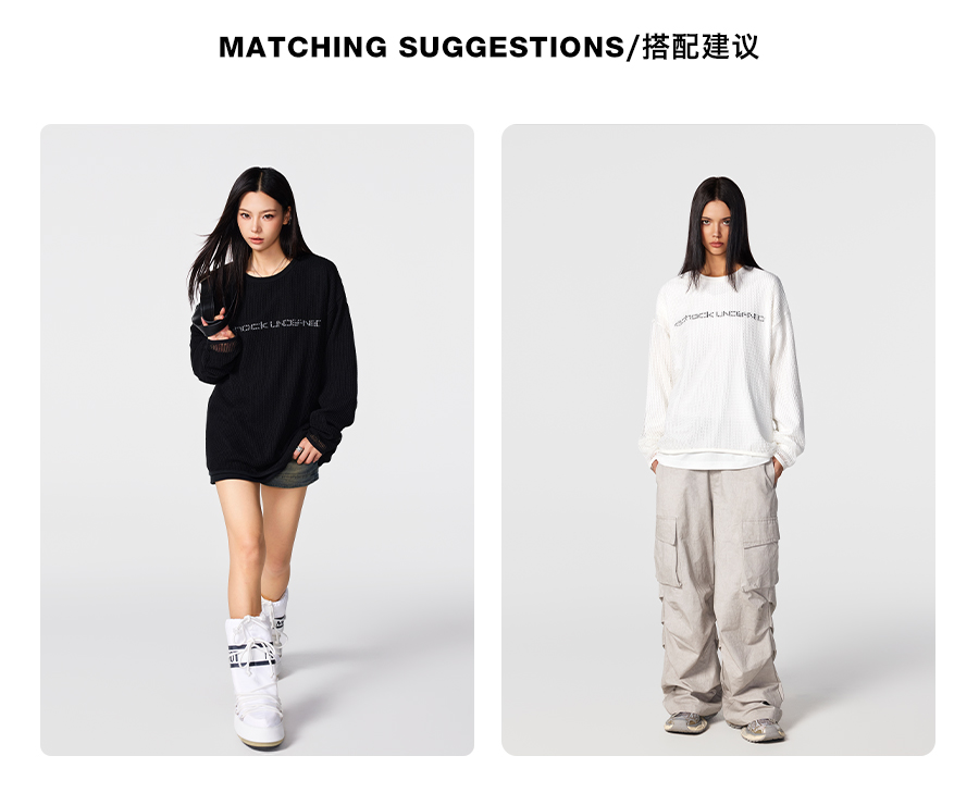 【Achock官方店】潮牌假两件重工镂空印花t恤男国潮重磅圆领卫衣