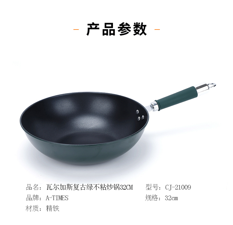 A-TIMES瓦尔加斯复古绿不粘炒锅32CM-CJ-21009