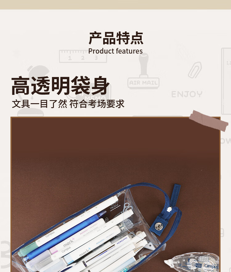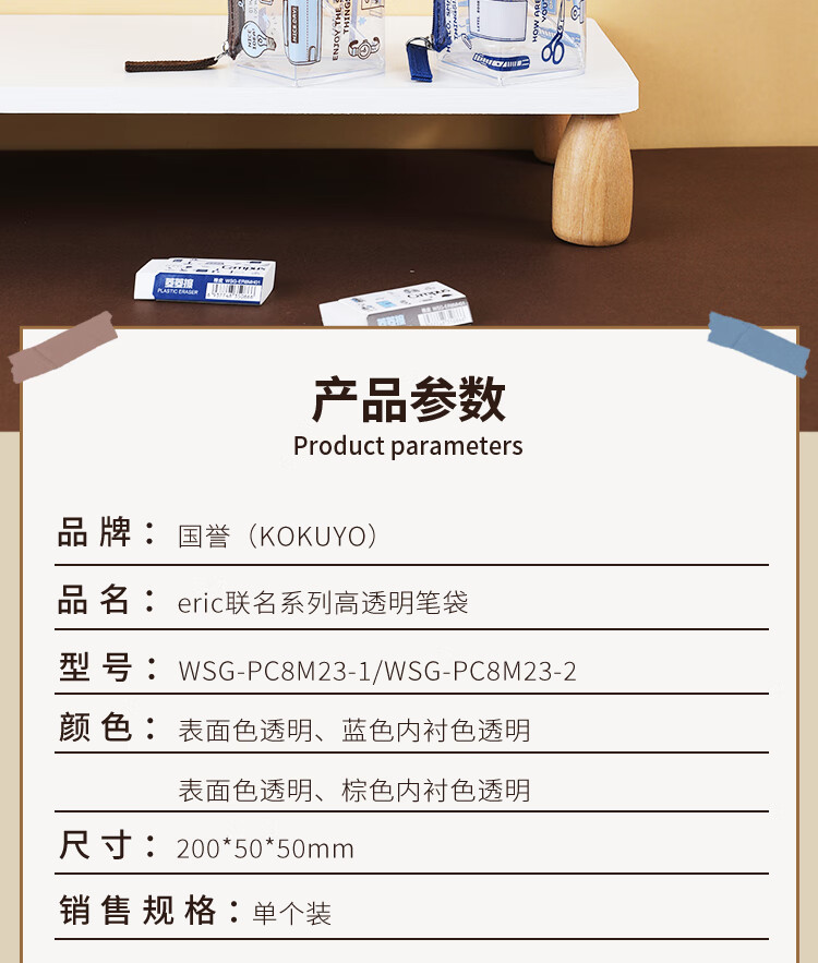 国誉eric C2-R高透明笔袋(蓝色) 大号 WSG-PC8M23-1\WSG-PC8M23-2