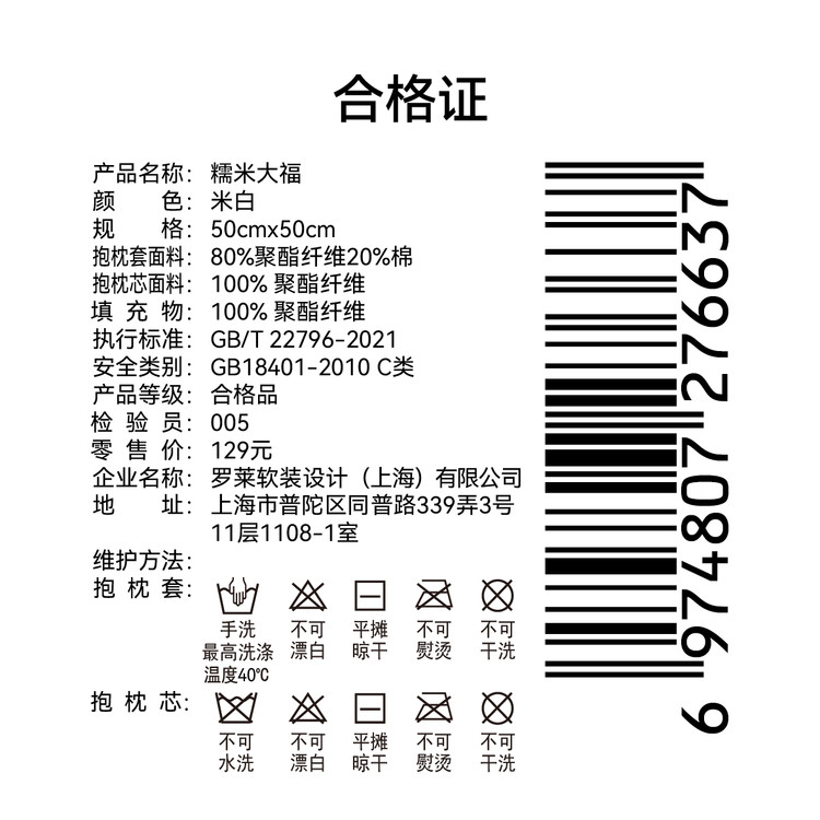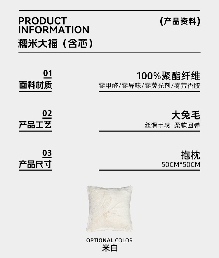 罗莱软装 糯米大福抱枕 米白 50*50cm