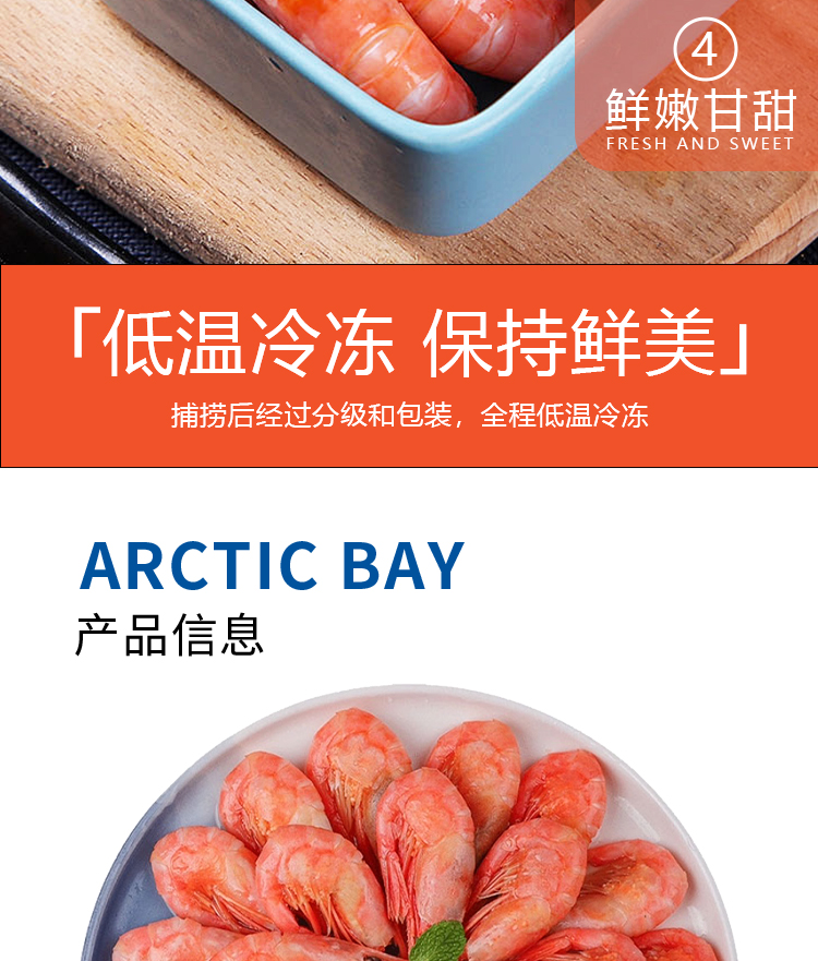 【润荇渔市200-100】进口俄罗斯北极甜虾速冻装 200g/袋 鲜甜低脂高蛋白
