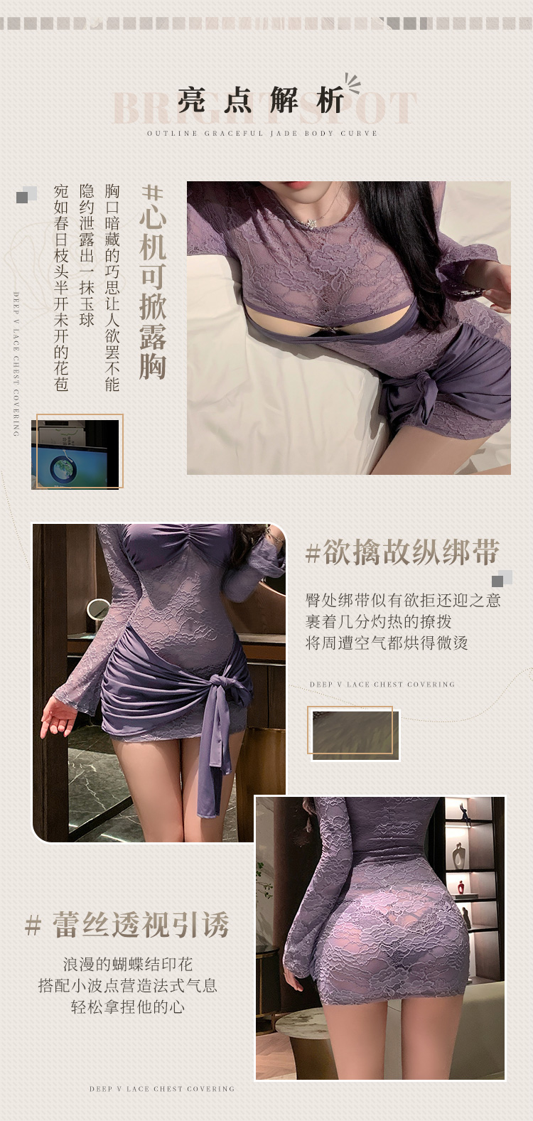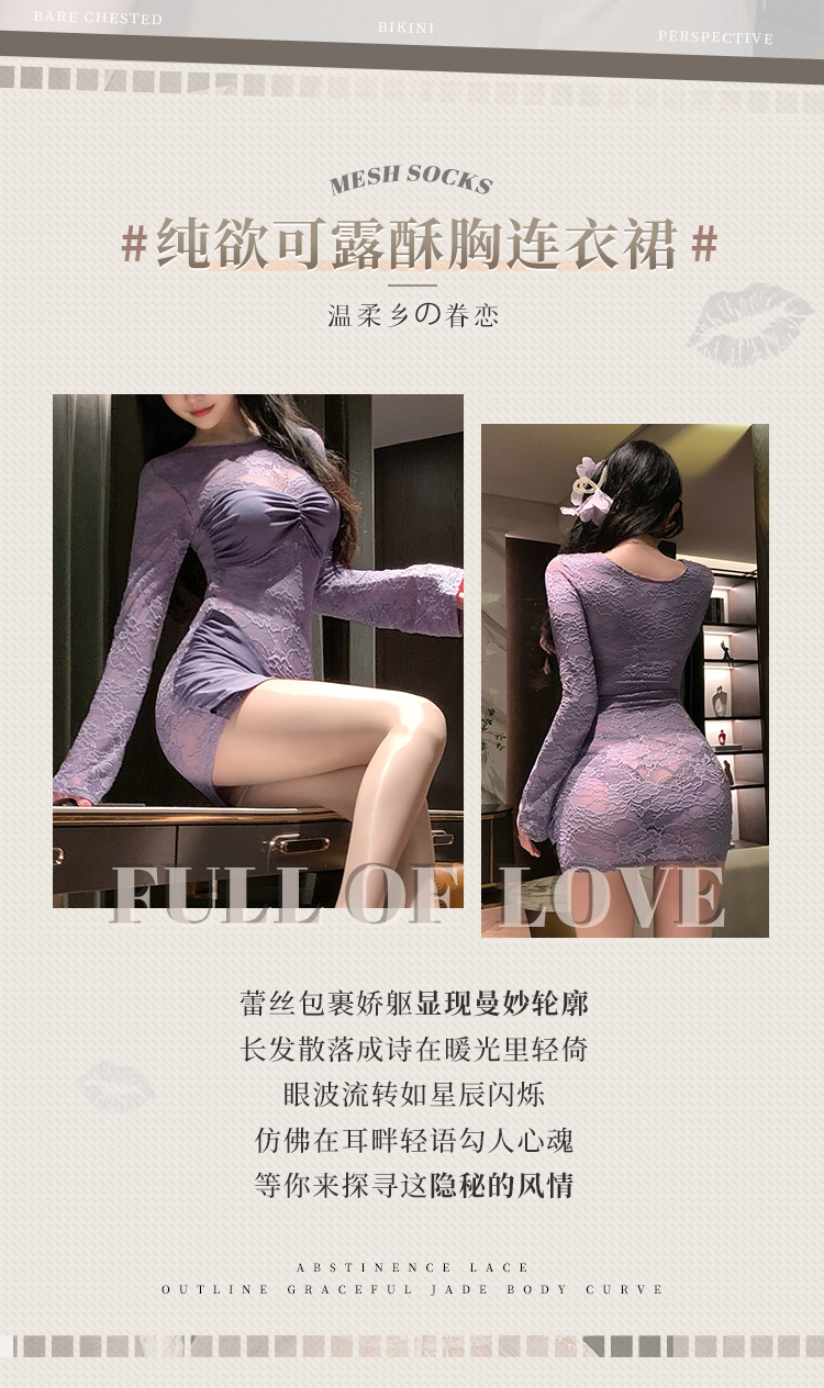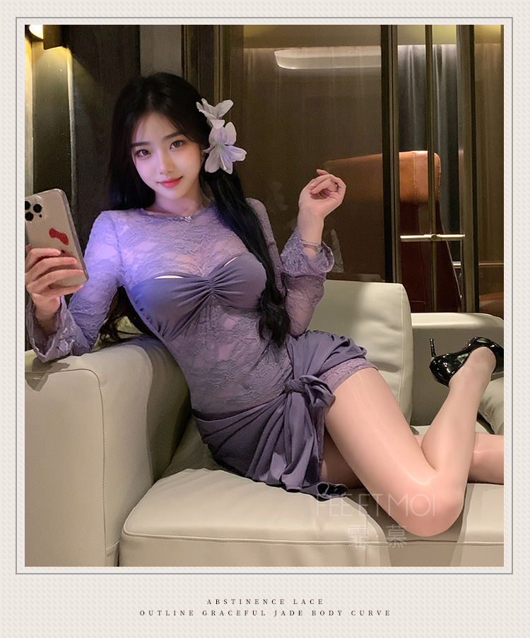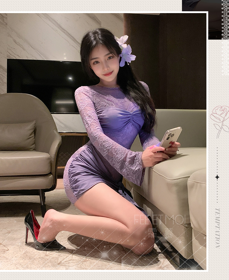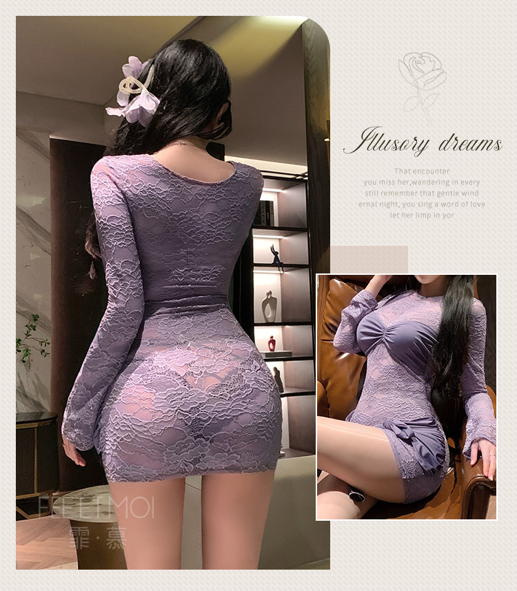 霏慕 纯欲名媛透视长袖连衣裙ZY12