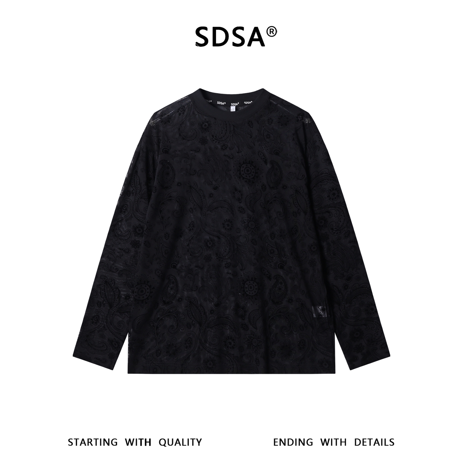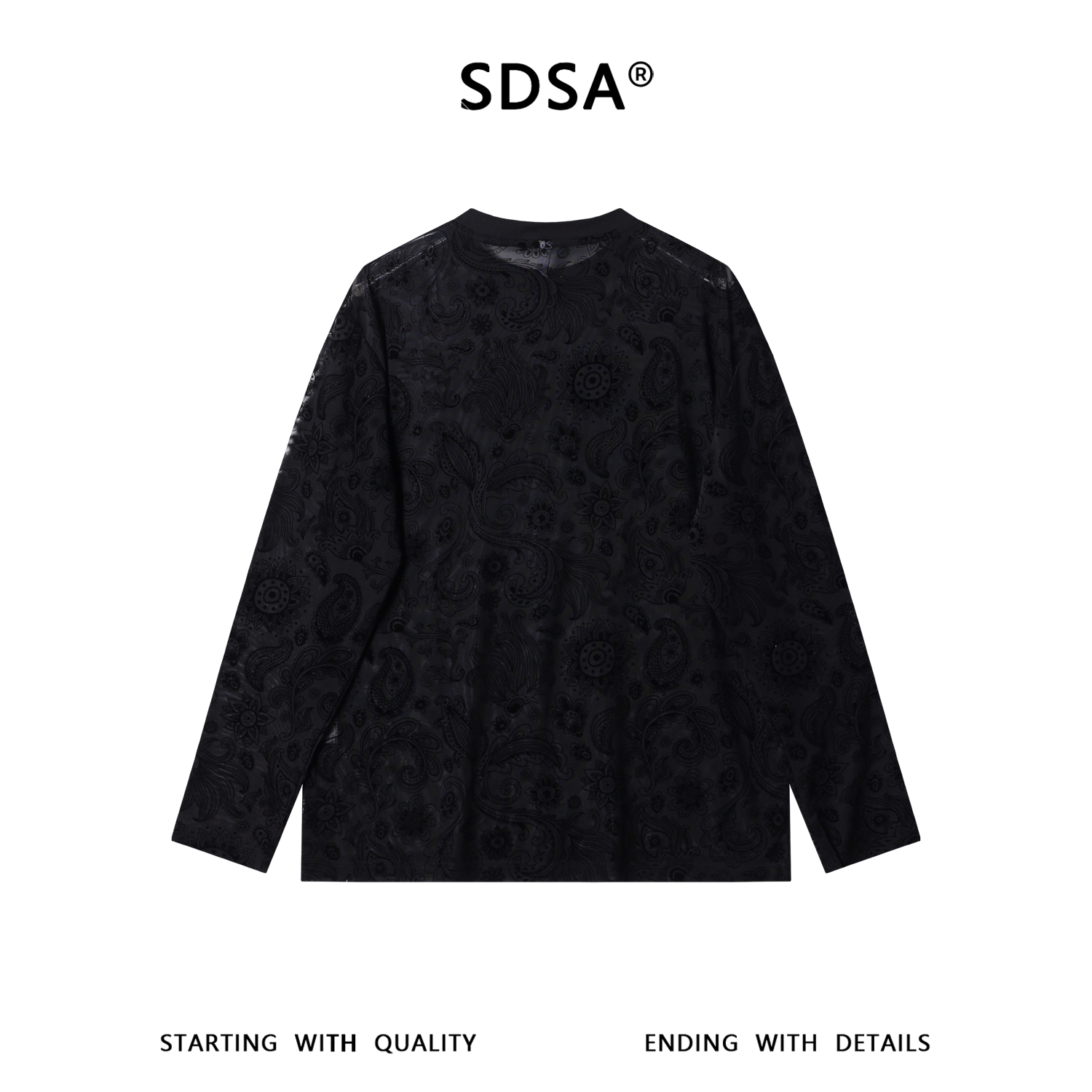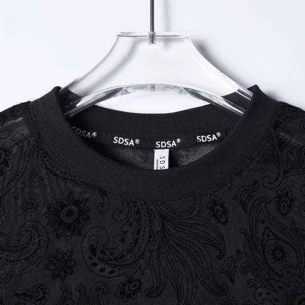 SDSA男装2026新款高贵轻奢个性时尚满印植绒花卉圆领长袖T恤休闲