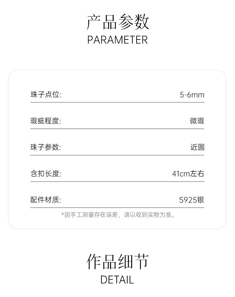 礼兰 天山雪(彩玲)S925银淡水珍珠项链5.6mm