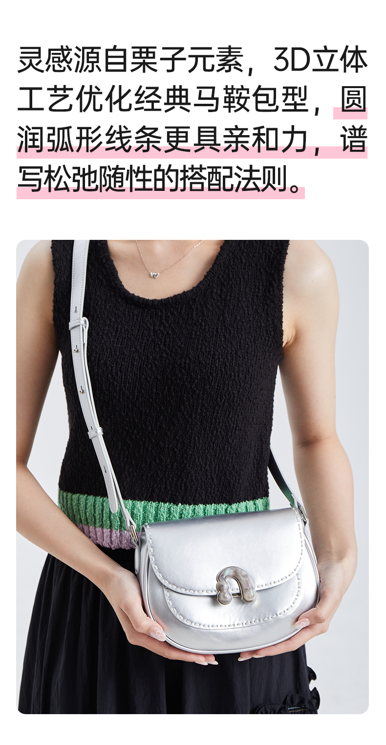 Amazing Song乙颂 栗子包新款小号/横板牛皮通勤斜挎马鞍包女