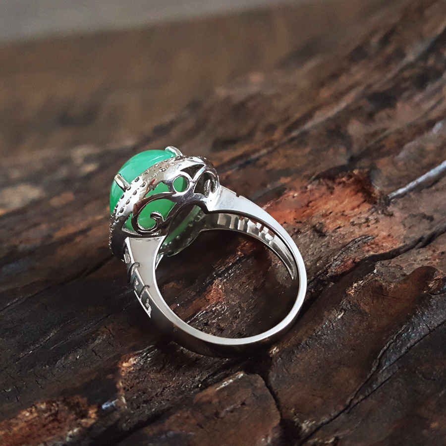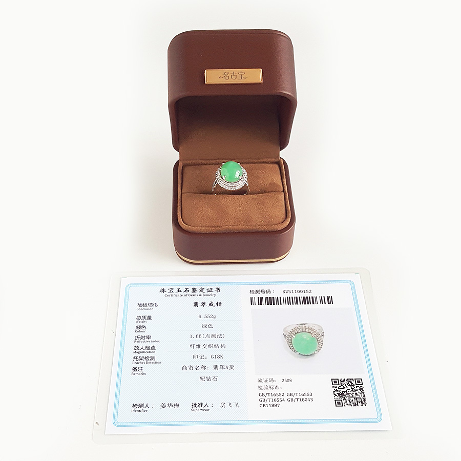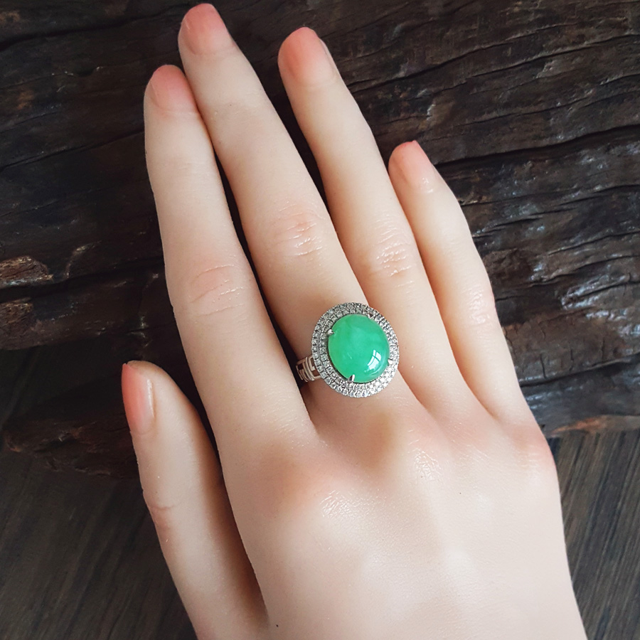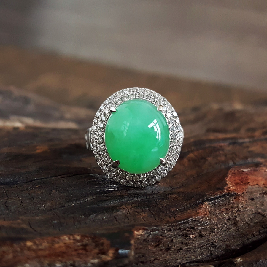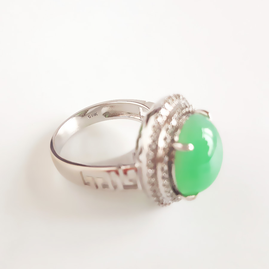 名称 | AU750白金豪镶钻镶天然细腻满绿糯种蛋面翡翠戒指 |