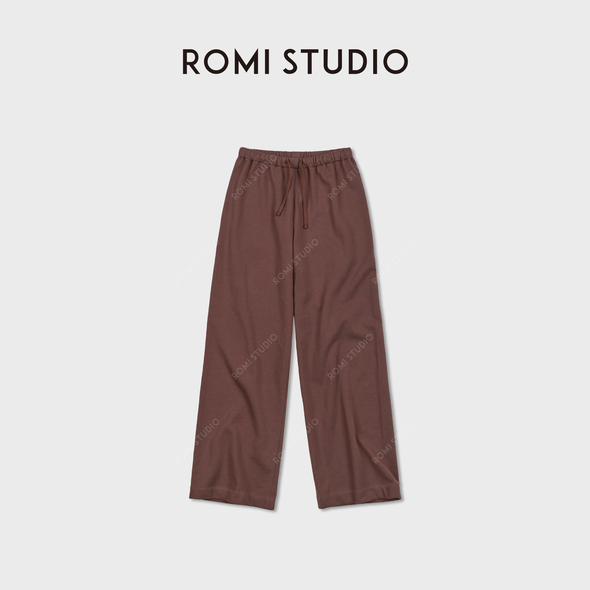 ROMI STUDIO100%棉高密手工挑边宽松抽绳糯感直筒裤 RWCAX87437