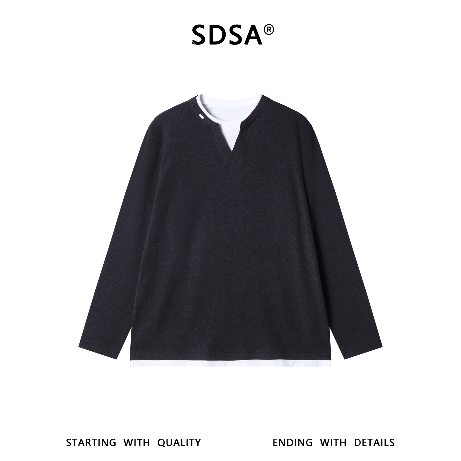 88171SDSA男装2026新款高贵轻奢潮牌时尚撞色假两件圆领长袖T恤百搭潮