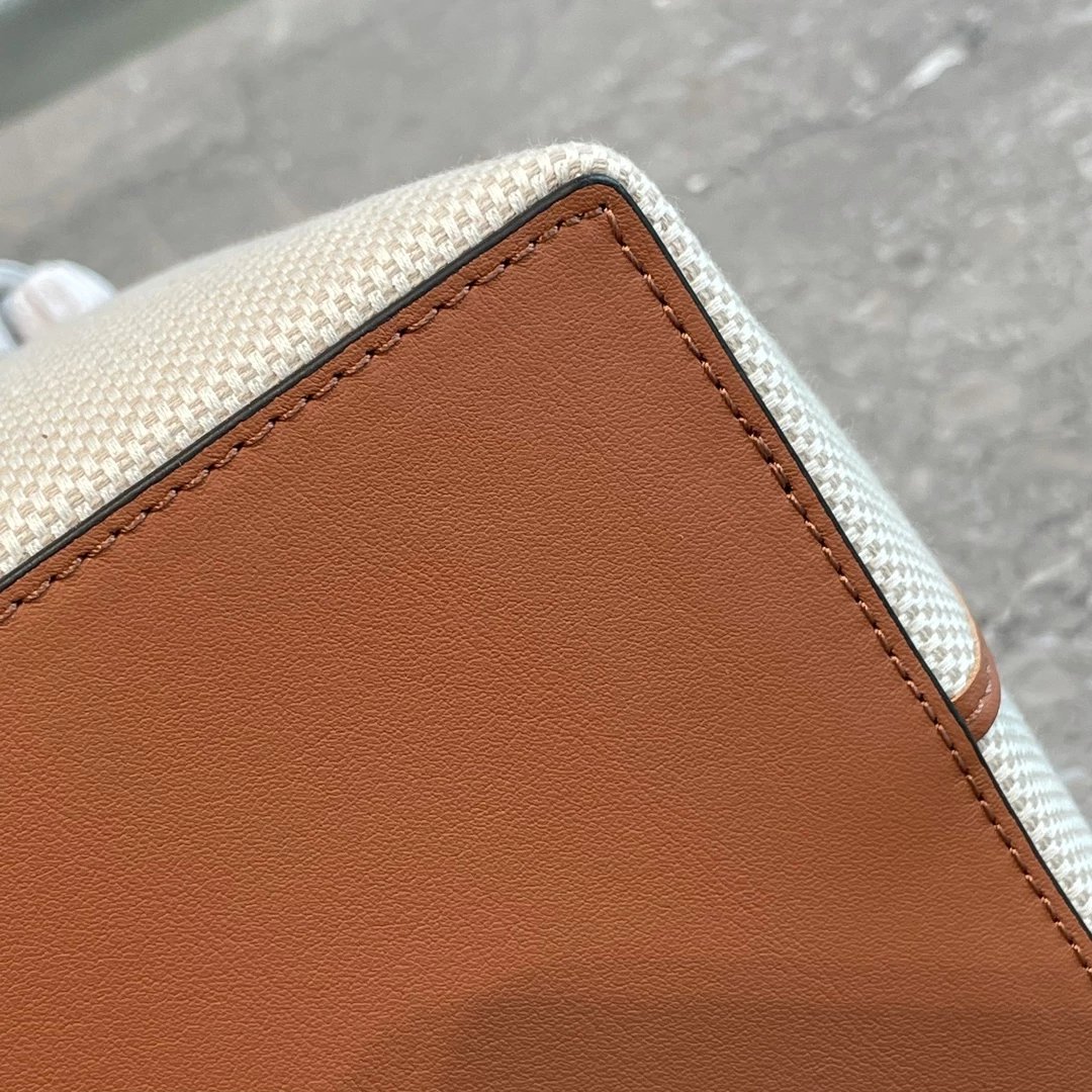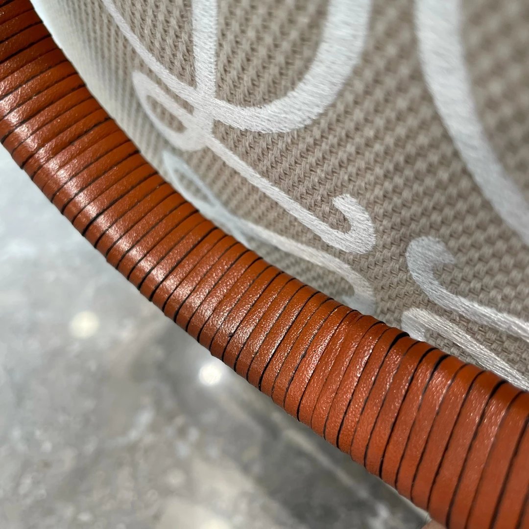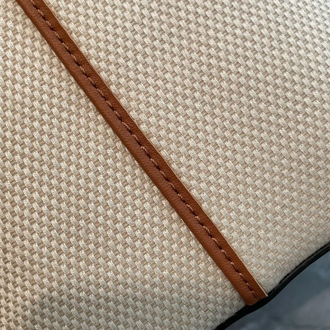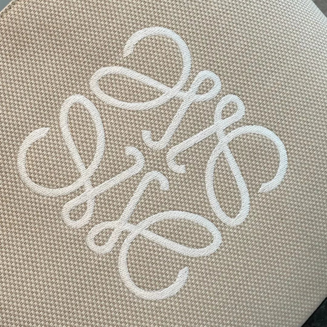 将品牌经典标志图案织入到奶茶白的帆布面料中