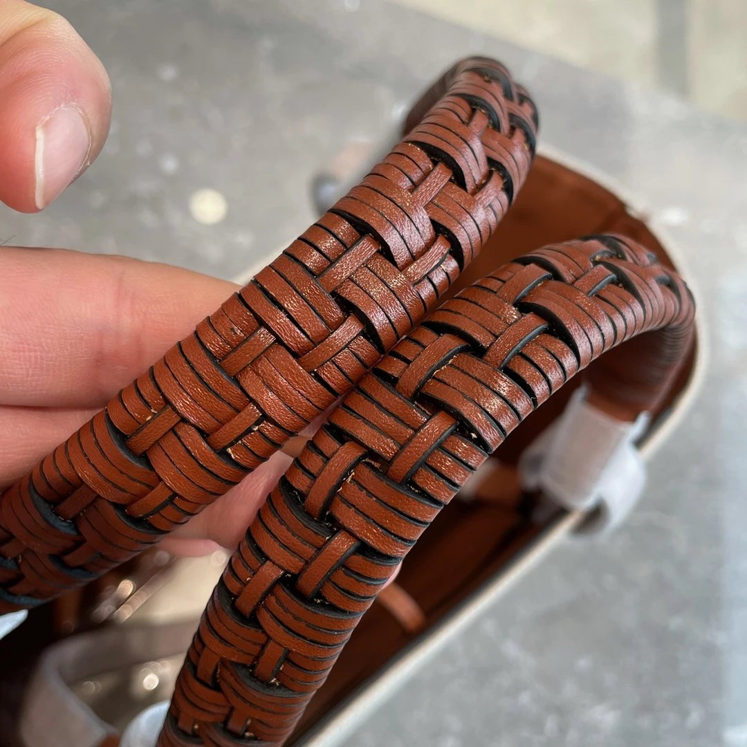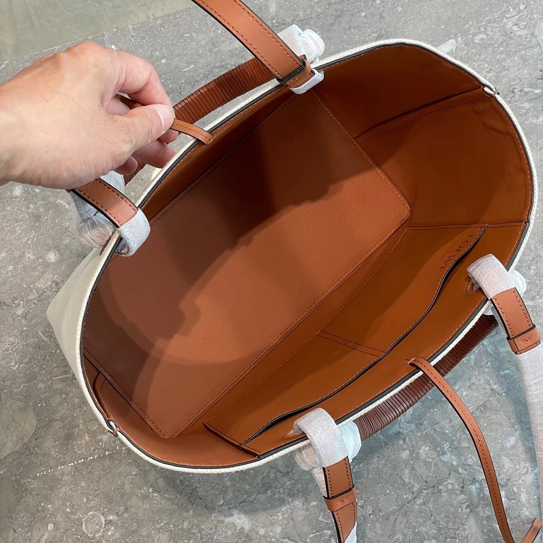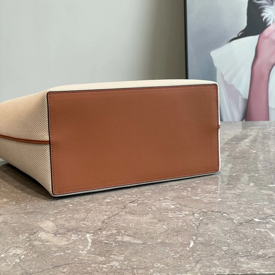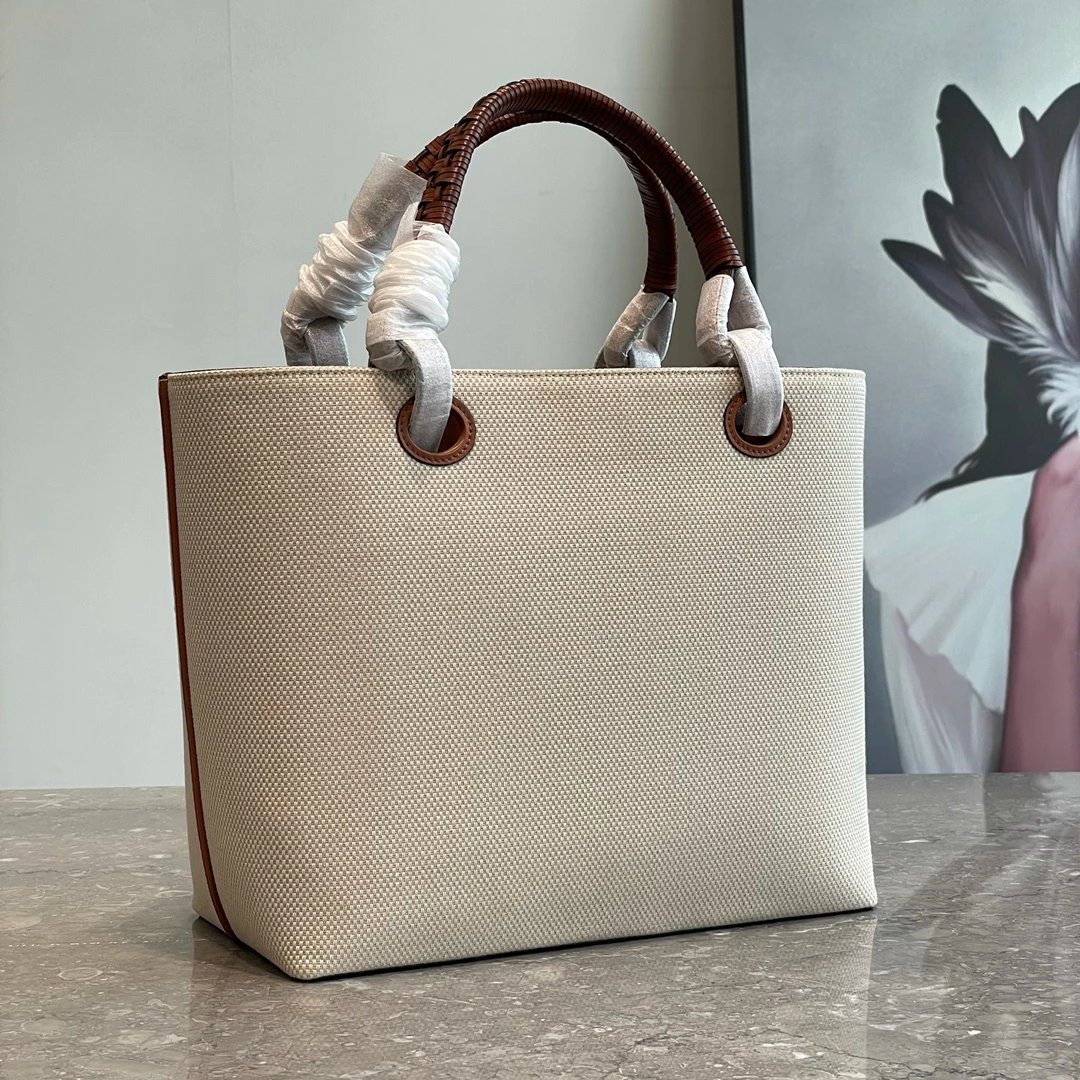 将品牌经典标志图案织入到奶茶白的帆布面料中