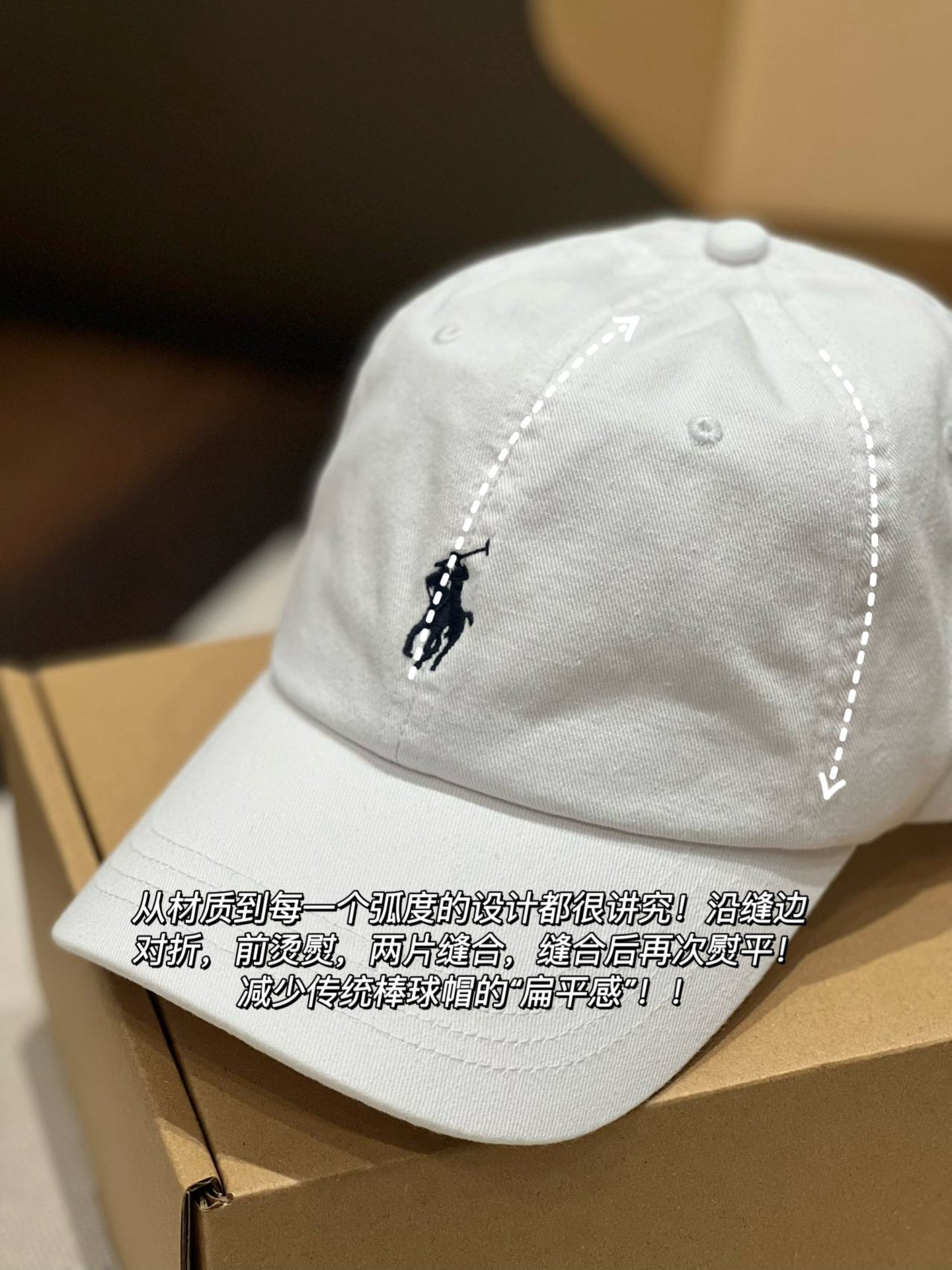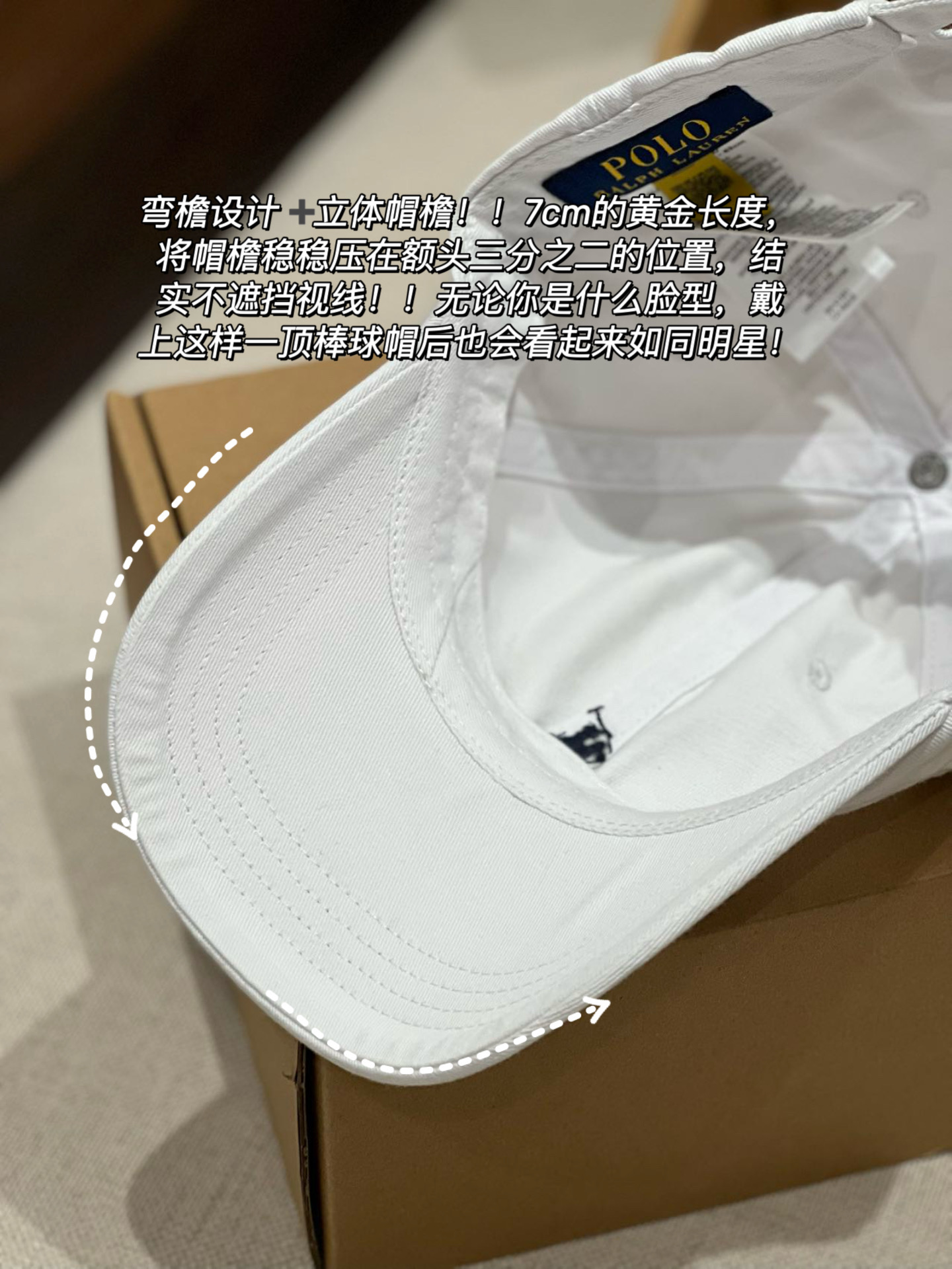 1️⃣帽子的版型超正!帽型弯檐45度无死角+6片式软顶结构,即便是软顶的,也不是软塌塌的没型,随手放在桌面上,帽型也依旧立体,这也是它修饰脸型和头型的原因!