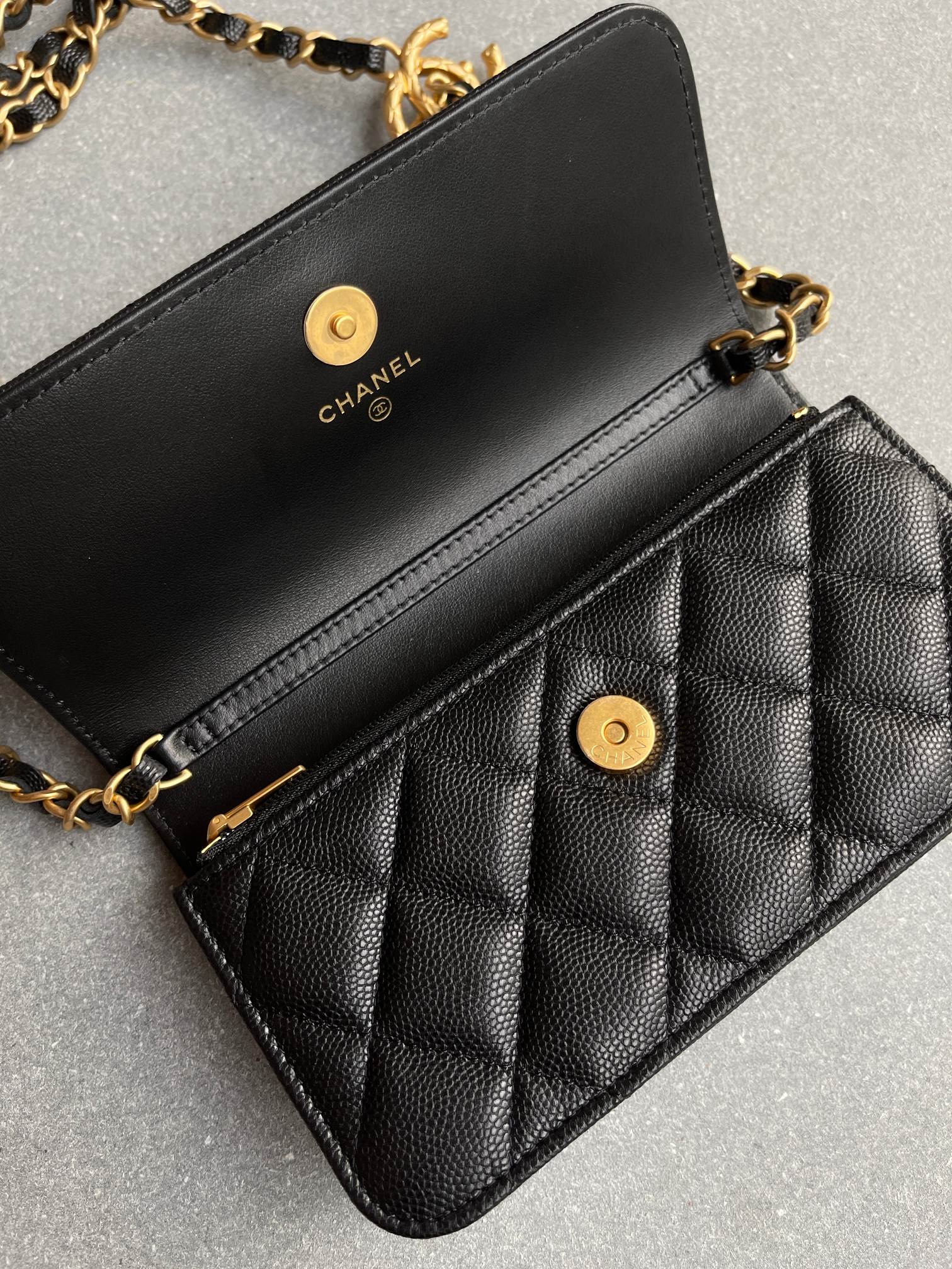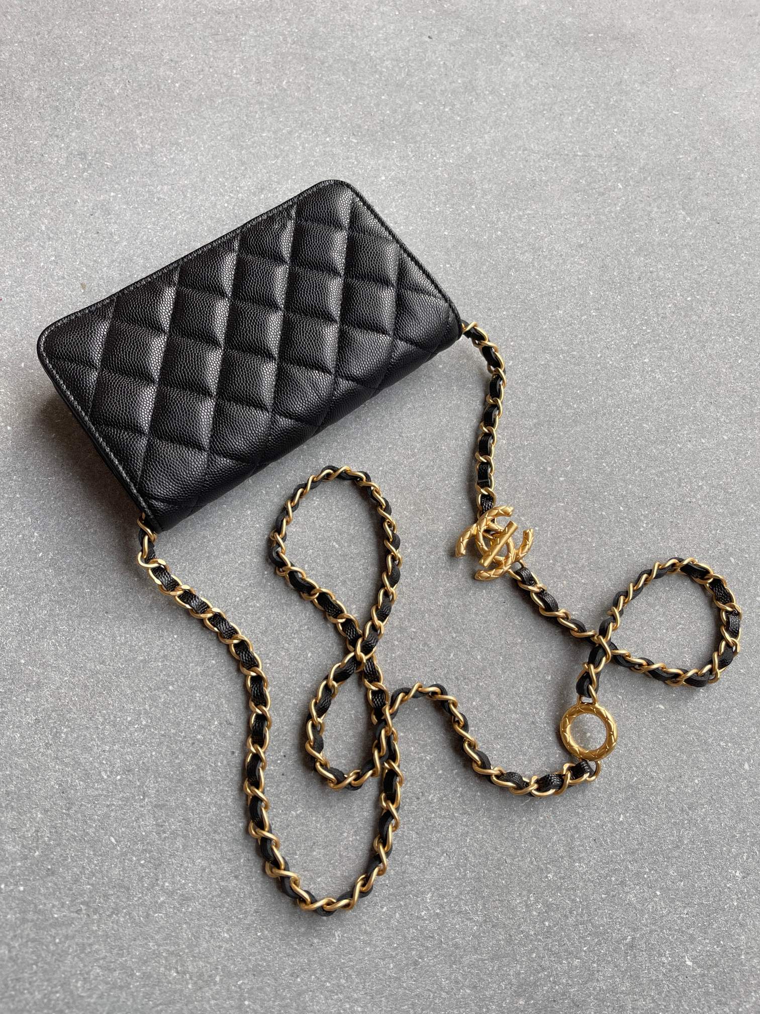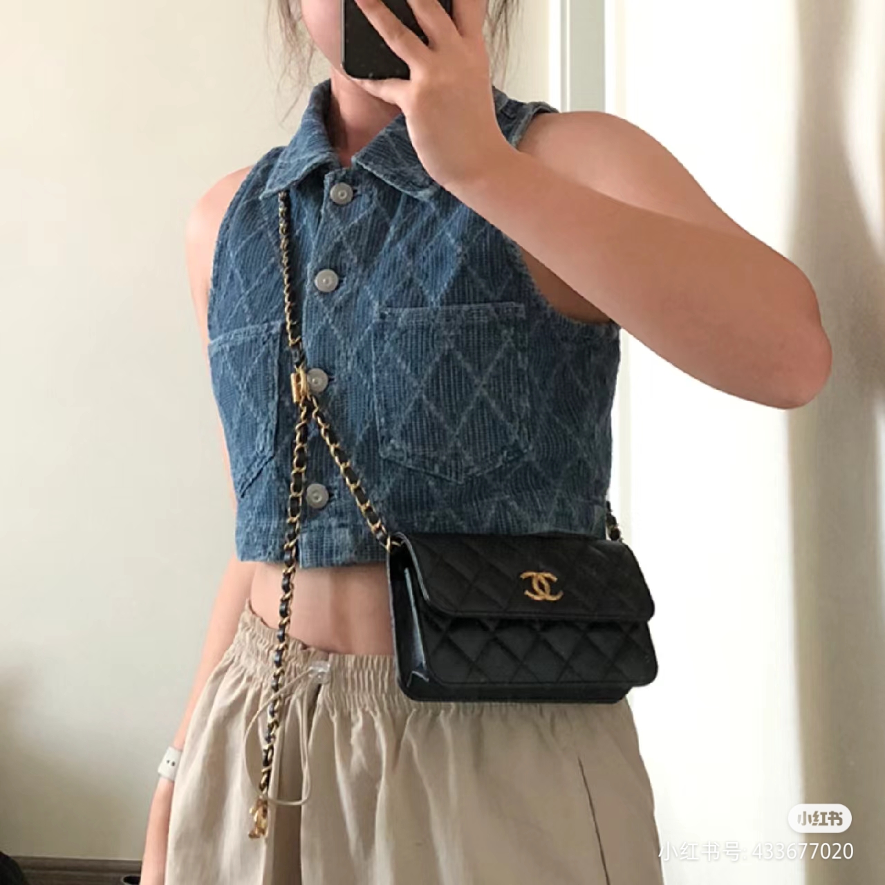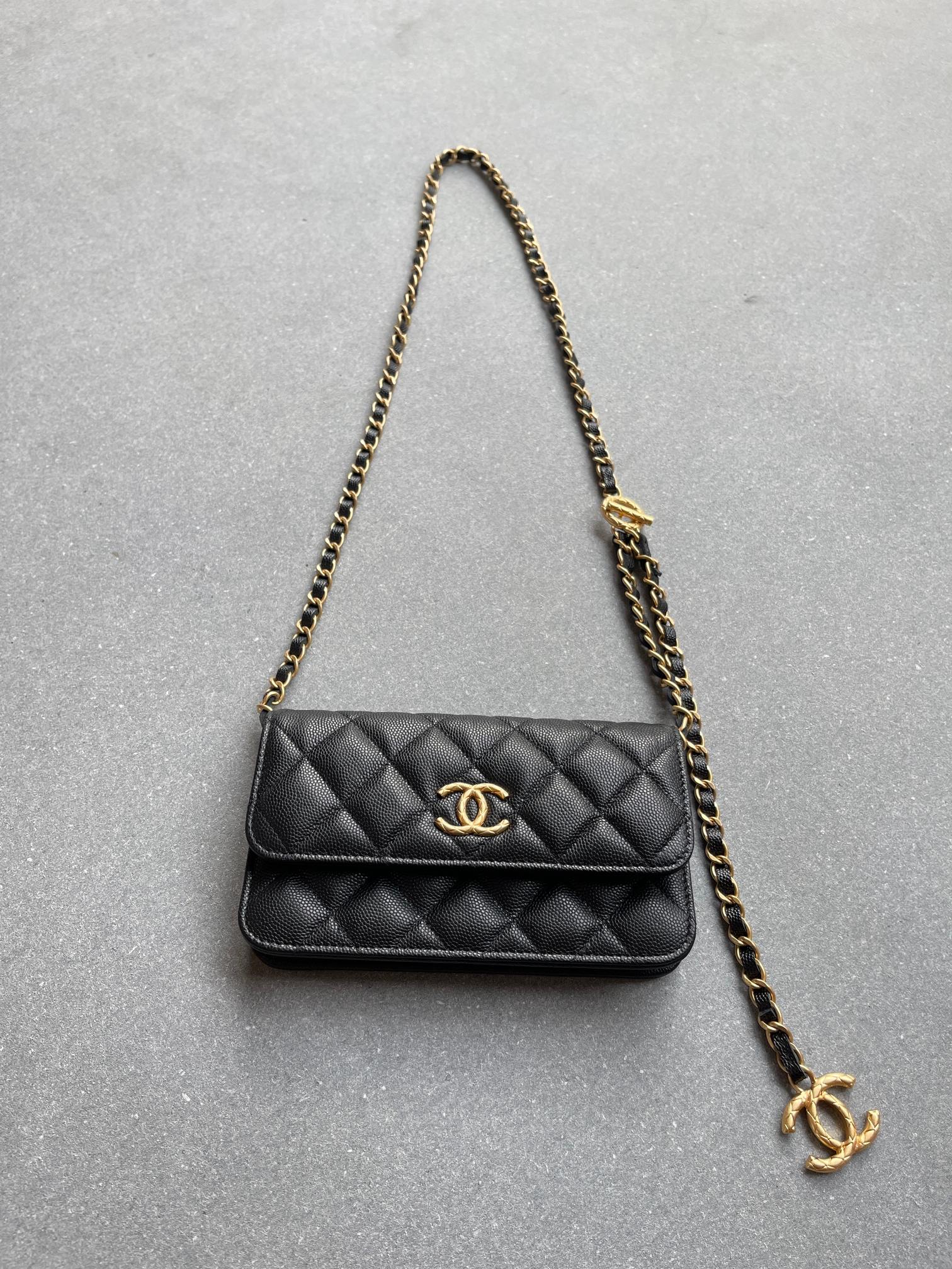 Chan*l小香 23b全新可调节链条款手机包 黑色现货