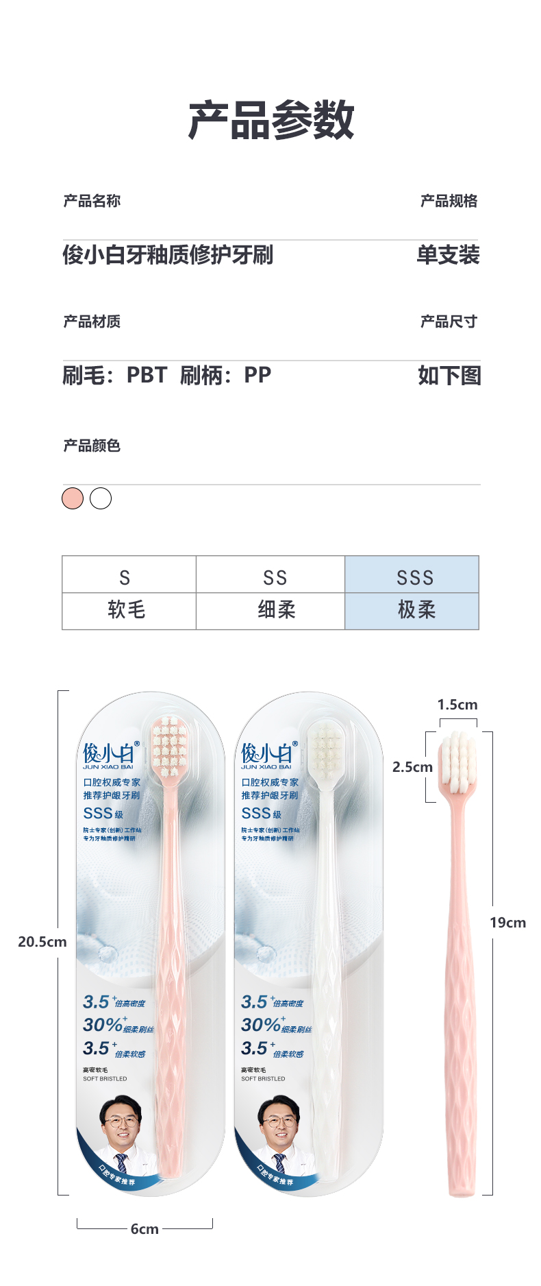 【口腔博士推荐】俊小白SSS级高密软毛护龈牙刷 -多支装