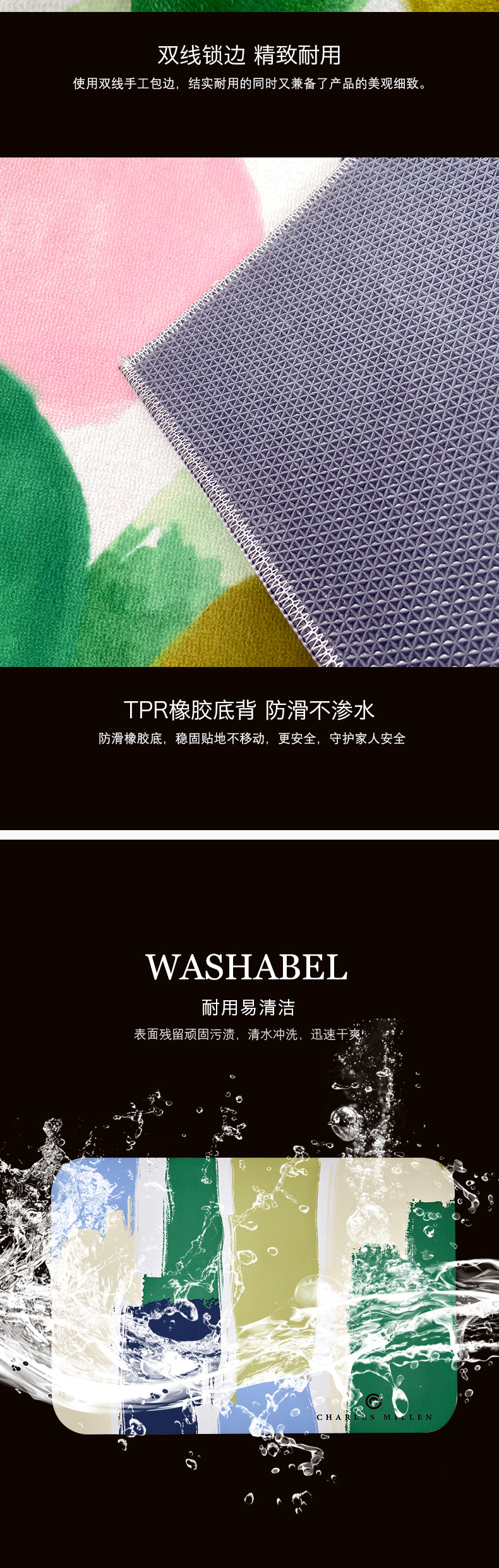 【材质】毯面高精密比利时圈绒+全覆盖TPR防滑橡胶底
