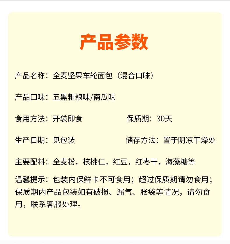 面包新语 全麦坚果车轮面包 400g/400g*2