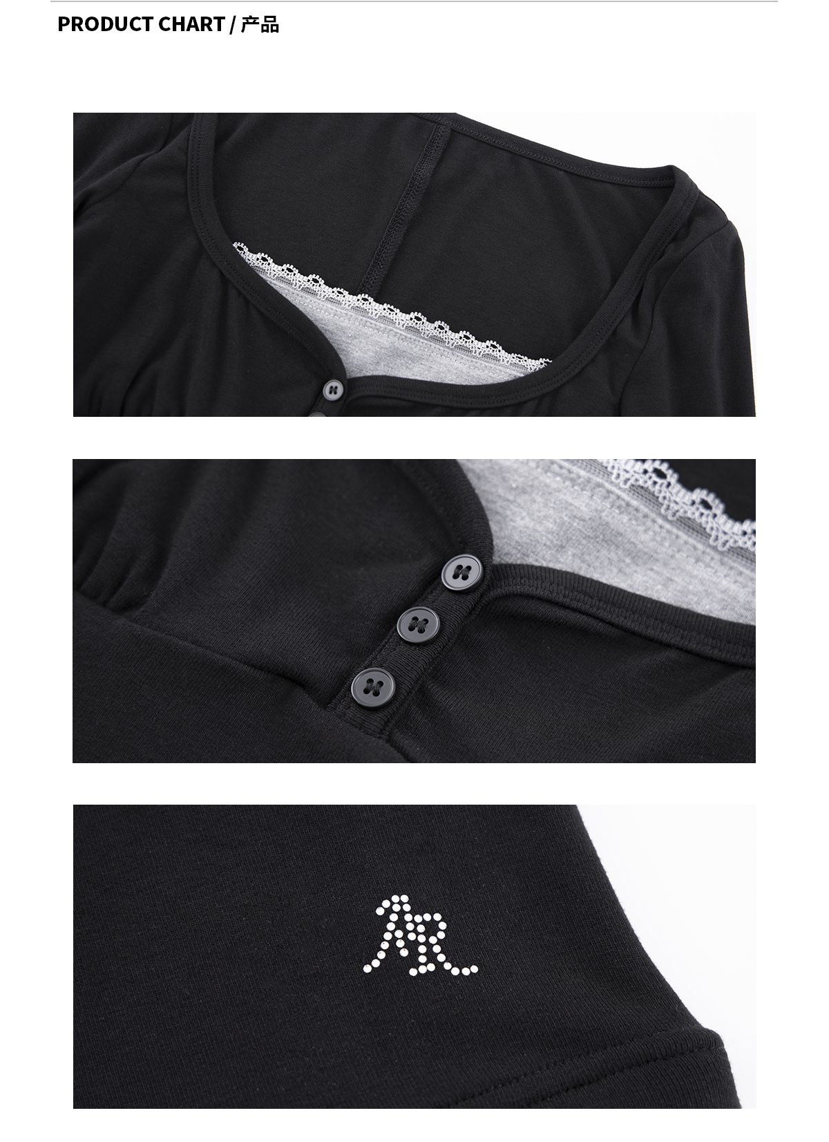 Ariseism 美式复古蕾丝假两件长袖t恤女2025春季新款修身显瘦上衣