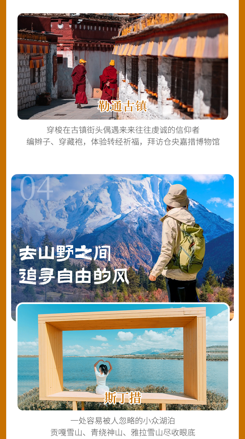 注:藏区自然条件有限,沿途餐饮、住宿质量可能无法与大城市相比,望谅解。